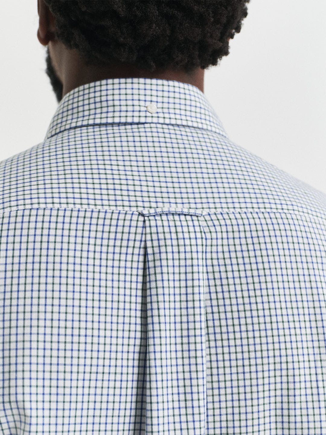 A versatile wardrobe staple, this GANT shirt is a true statement piece. It features a micro check pattern for a timeless appeal. Featuring a button-down collar and pleats at the back, it is finished with a patch pocket on the left. Team this shirt with a pair of chinos or denims to make a lasting impression on everyone.