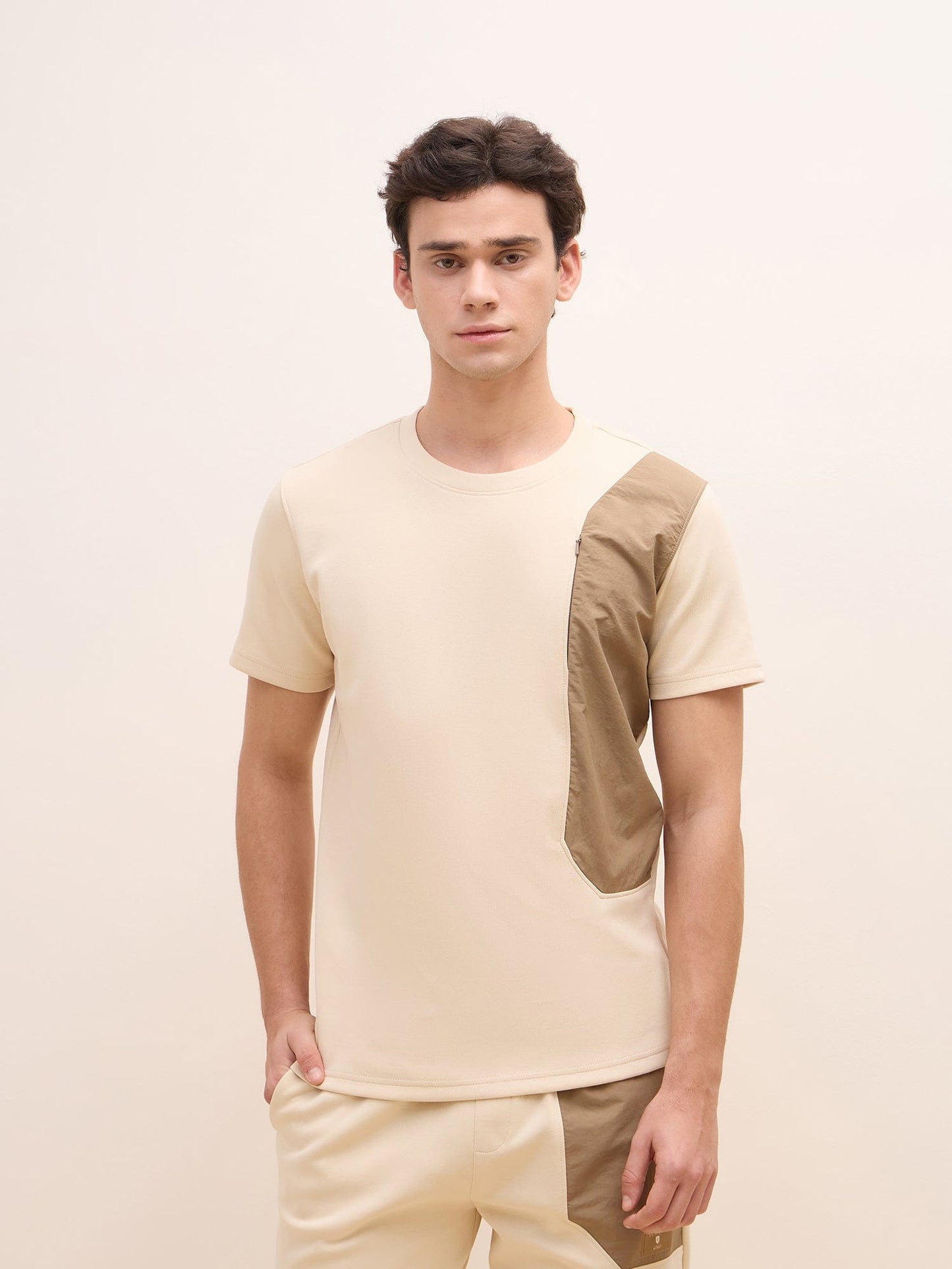 This classic beige t-shirt is a wardrobe essential for any man. Crafted from a comfortable polyester blend fabric, it features a regular fit, short sleeves, and a crew neck. The solid pattern and slip-on closure make it easy to wear and style. Perfect for everyday wear, this t-shirt is sure to become a go-to choice for any occasion.