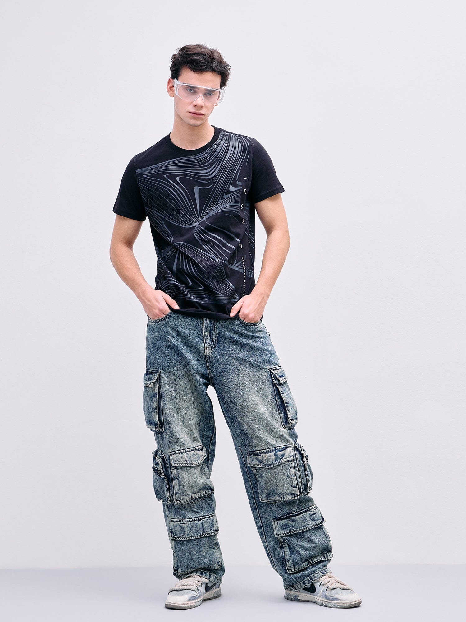 This classic black t-shirt is a wardrobe essential. Crafted from soft, breathable cotton, it features a regular fit for comfort and a crew neck for a timeless look. The printed pattern adds a touch of personality, while the short sleeves and slip-on closure make it easy to wear. Perfect for everyday wear, this t-shirt is sure to become a favorite.