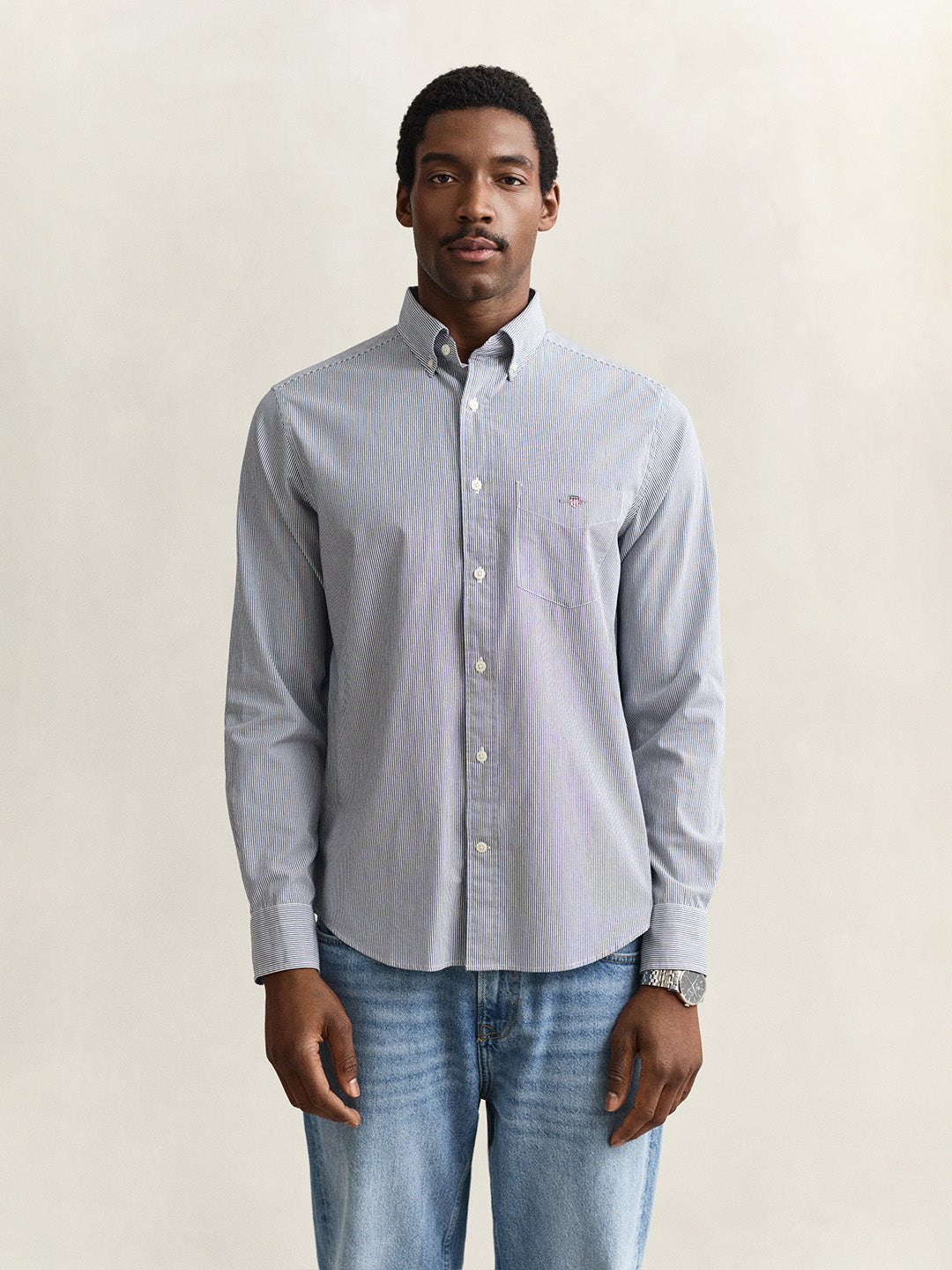 Elevate your wardrobe with the GANT Men Green Classic Poplin Striped Shirt. Crafted from high-quality poplin fabric, this shirt combines timeless style with modern sophistication. The subtle striped pattern adds a touch of character, making it a versatile piece for any occasion. With its comfortable fit and durable construction, this shirt will quickly become a staple in your closet. Dress it up for a formal event or pair it with jeans for a casual weekend look. Upgrade your style with this must-have wardrobe essential.