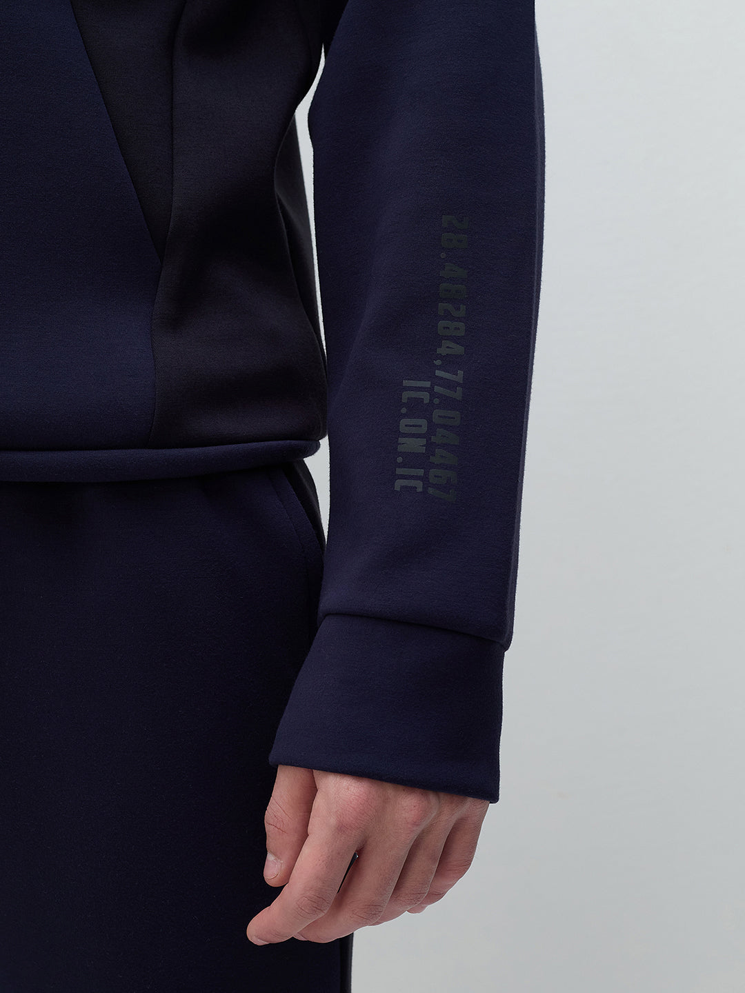 Elevate your casual style with our ICONIC Men Navy Blue Color Block Hooded Sweatshirt. Crafted with premium materials, this sweatshirt combines comfort and fashion effortlessly. The striking color block design adds a modern twist to a classic silhouette, making it a versatile wardrobe staple. Whether you're running errands or hanging out with friends, this hoodie will keep you looking stylish and feeling cozy. Upgrade your wardrobe with this must-have piece that offers both comfort and style.