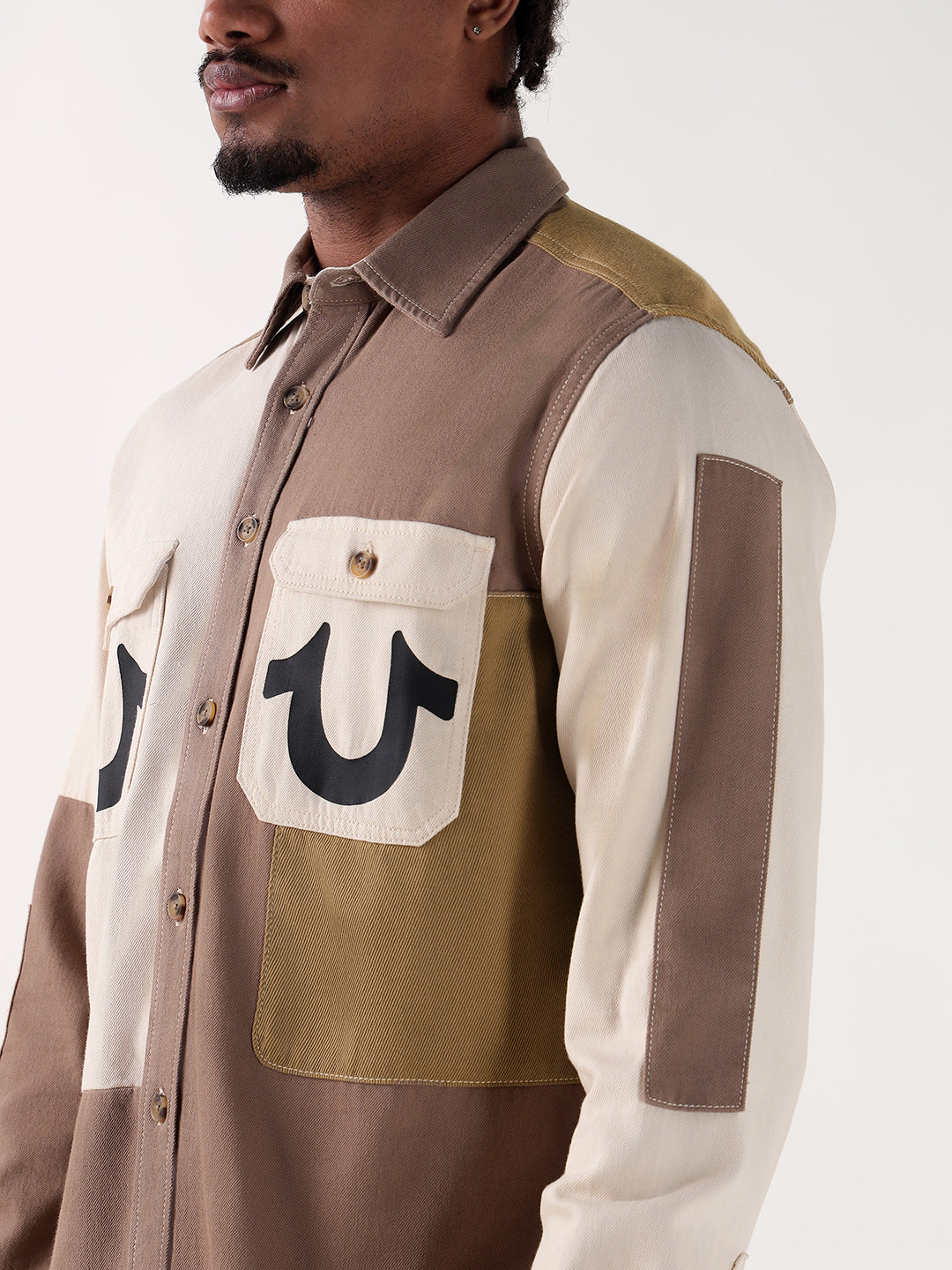 Elevate your style with the TRUE RELIGION Men Multi Color Blocked Regular Fit Shirt. Crafted with quality materials and a modern design, this shirt offers both comfort and sophistication. The unique color blocking detail adds a pop of personality to your wardrobe, making it perfect for any occasion. Whether you're dressing up for a night out or keeping it casual, this shirt is a versatile and trendy choice. Upgrade your look with True Religion's signature style and impeccable craftsmanship.
