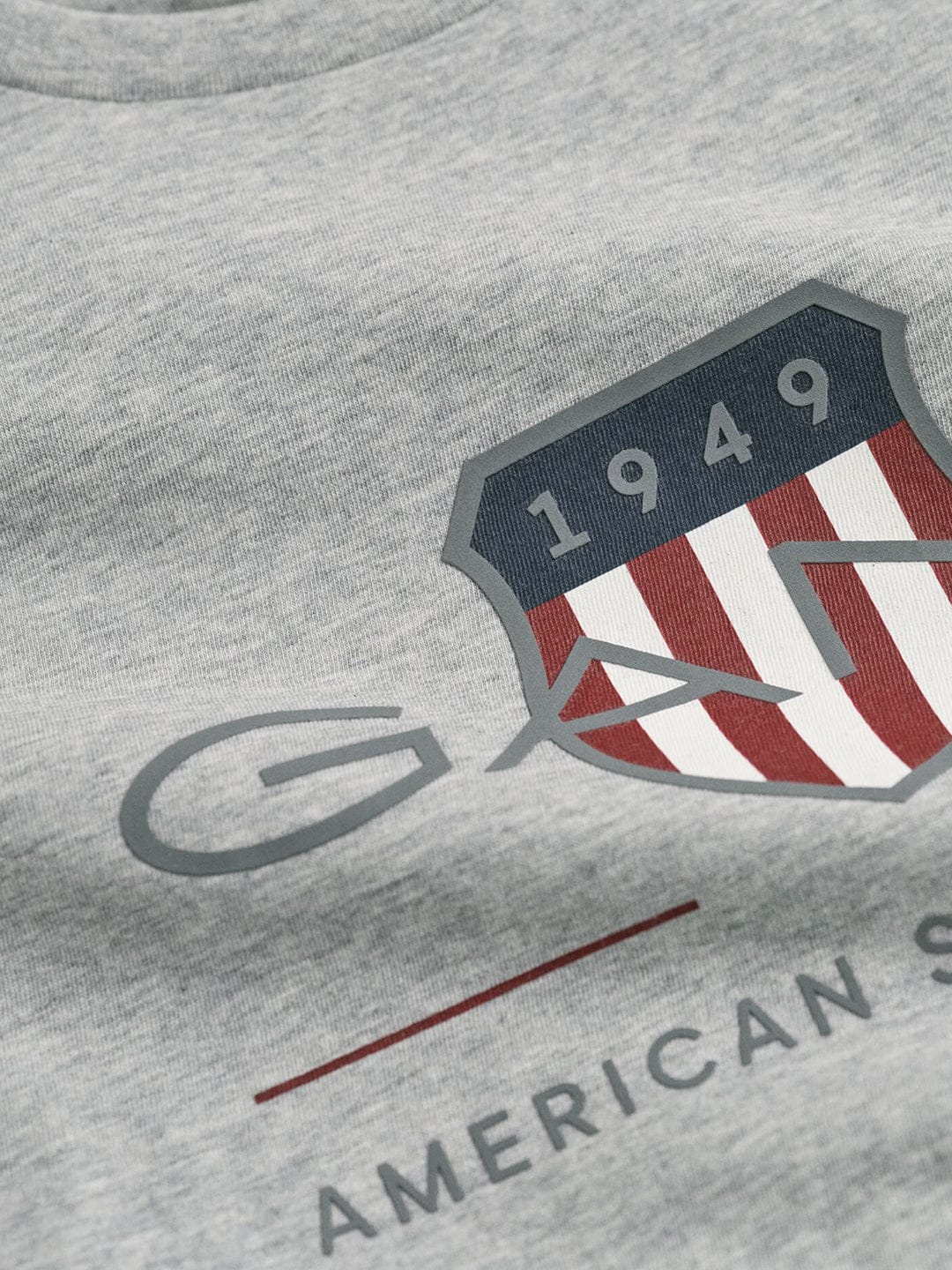 Discover the perfect blend of style and comfort with our Archive Shield T-Shirt for boys. Crafted from soft organic cotton, this grey tee offers a regular fit that ensures all-day ease. The printed pattern adds a touch of modern flair, making it a versatile addition to any wardrobe. Featuring a classic round neck and short sleeves, it's ideal for casual outings or playtime. The convenient pull-on closure makes dressing a breeze. Elevate your child's everyday look with this eco-friendly and stylish choice.