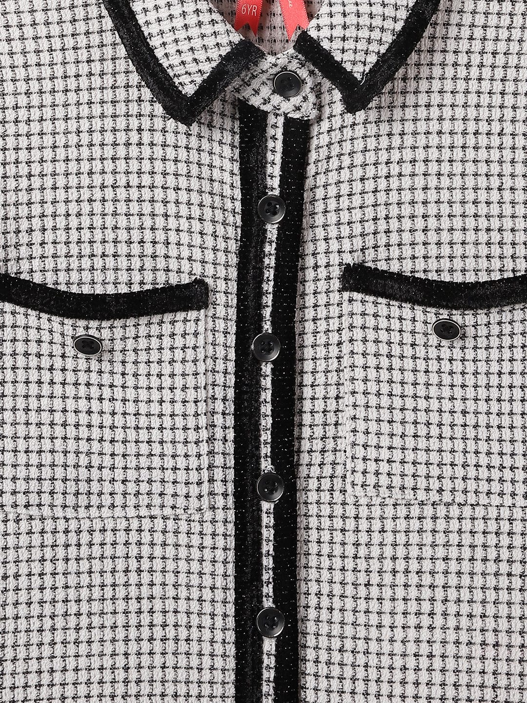 This girls' short sleeve shirt is made from a comfortable dual color melange knitted fabric that's both stylish and stretchy. The regular fit and spread collar provide a classic look while the textured pattern adds a touch of personality. The black color is easy to pair with any outfit and the button closure makes it easy to put on and take off. This shirt is perfect for everyday wear and is sure to become a favorite in her wardrobe.