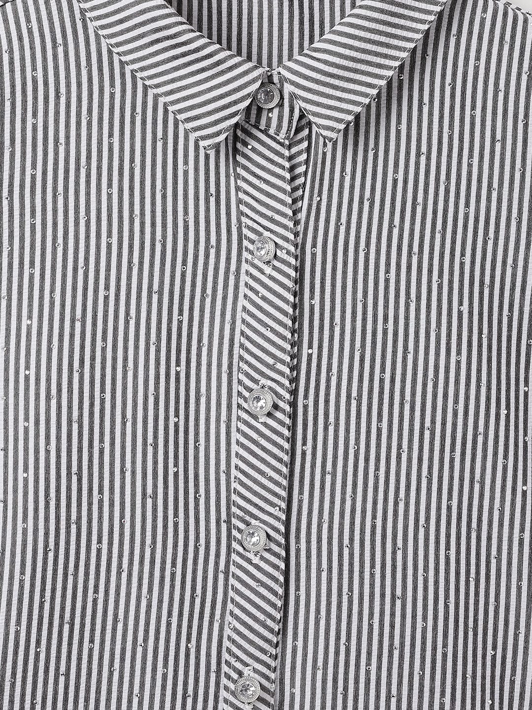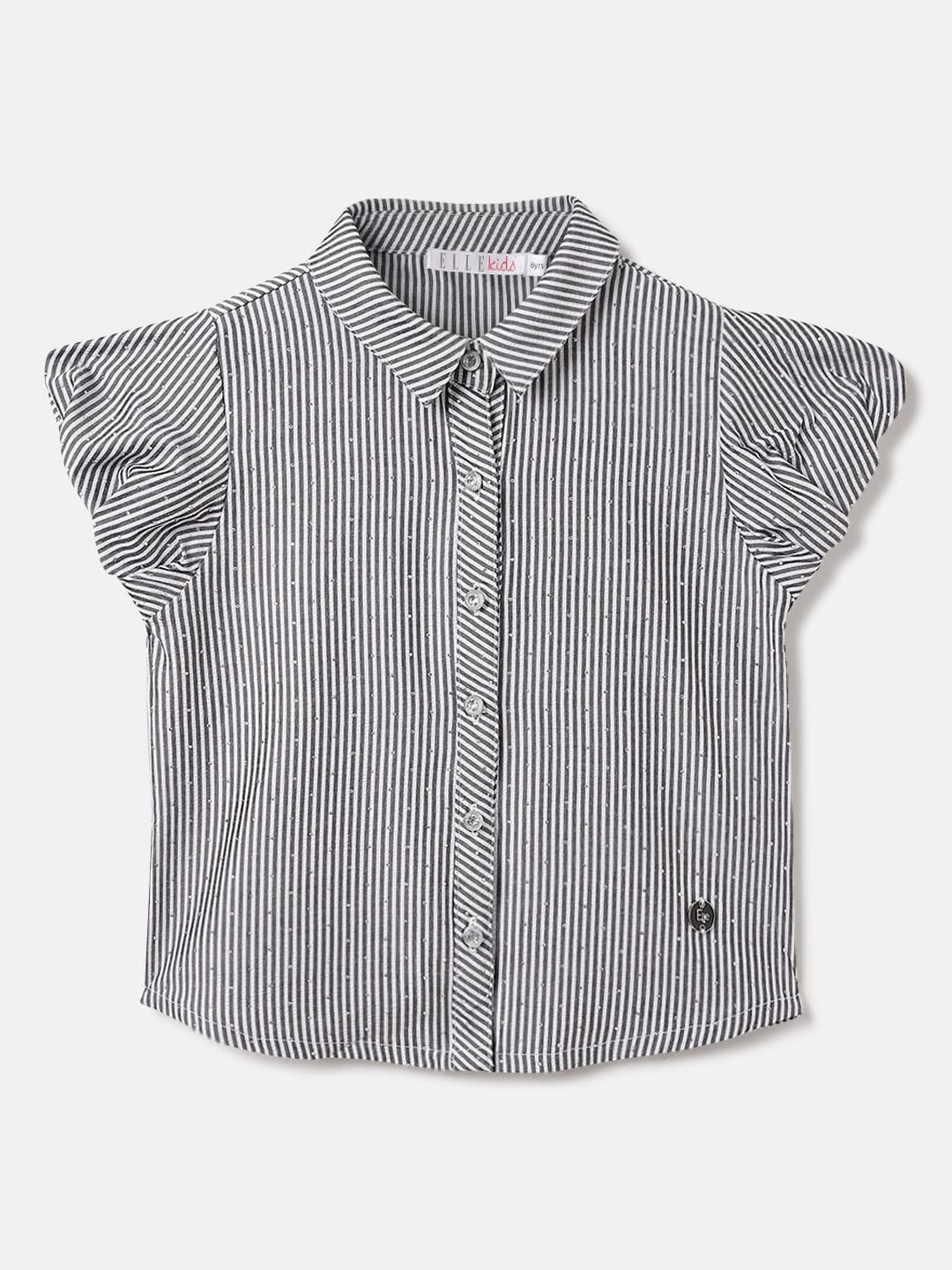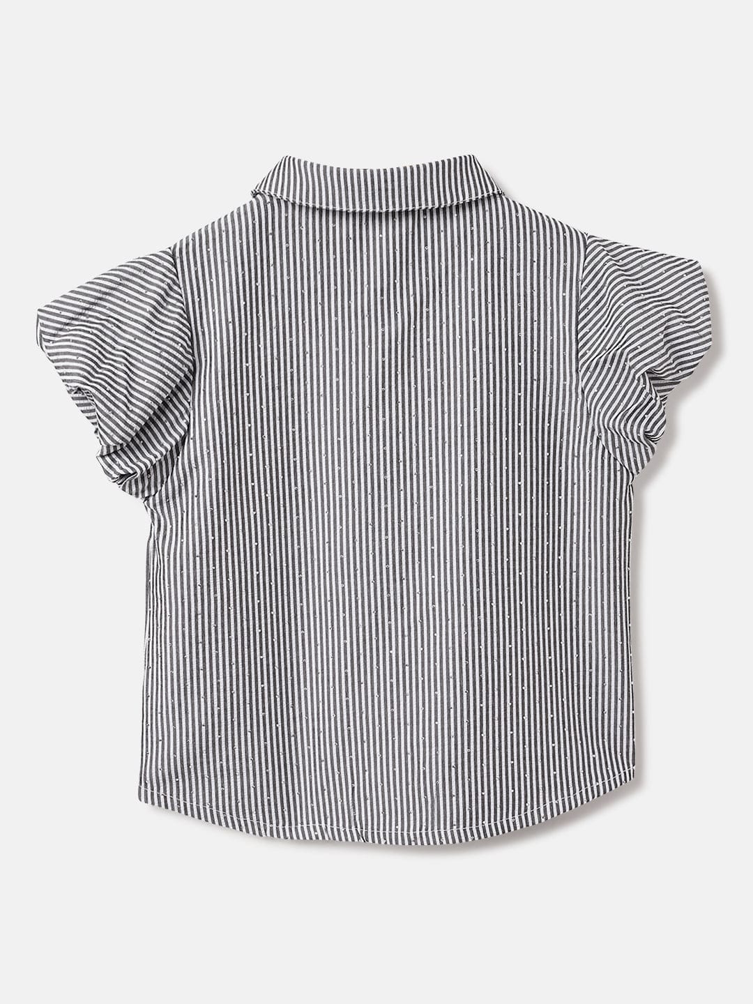 This stylish black top is perfect for girls who love a relaxed fit and a touch of texture. The striped shirt features a short sleeve with a pleated detail and a classic shirt collar. Made from comfortable polyester fabric, it has a button closure for easy dressing.