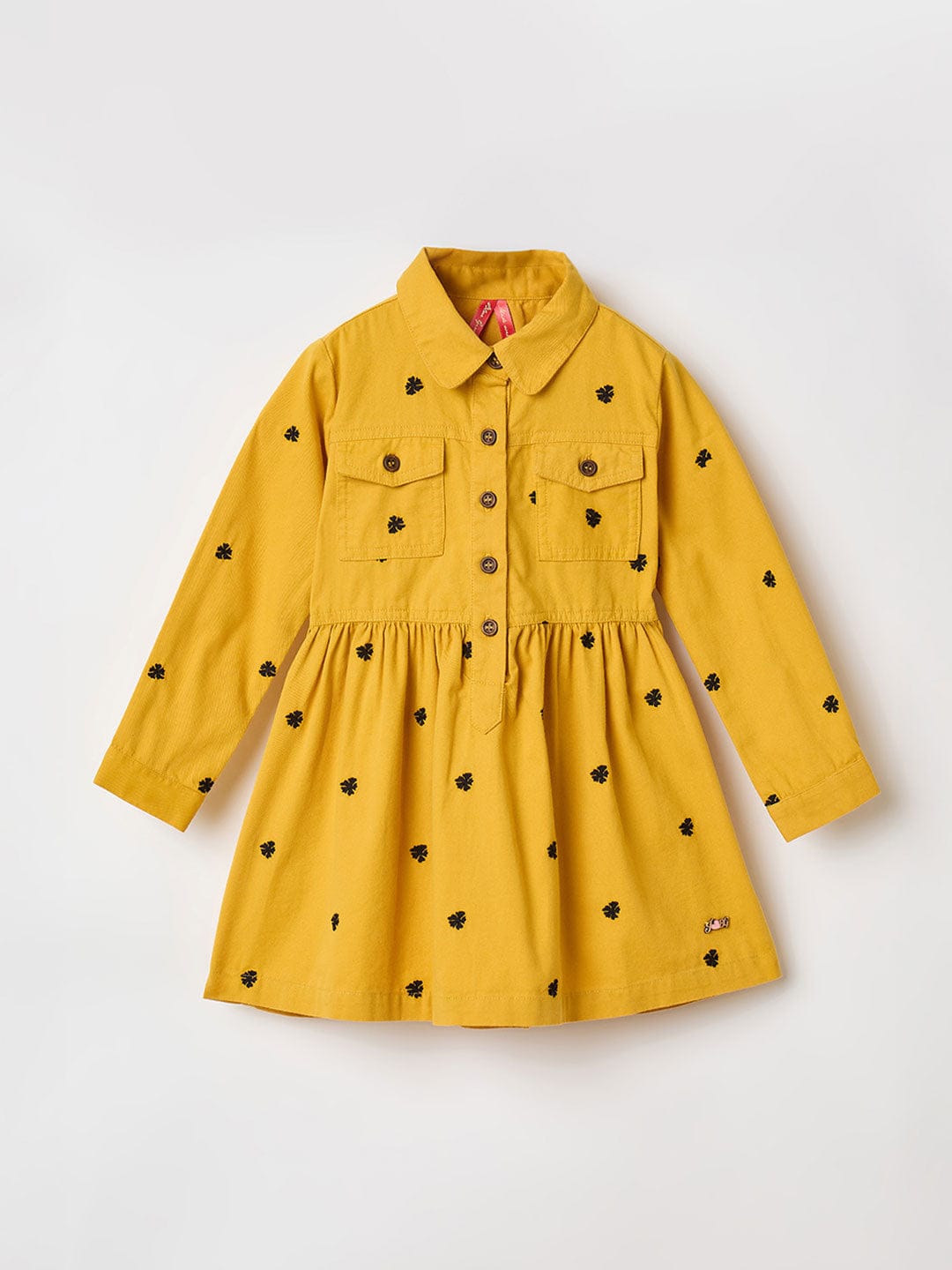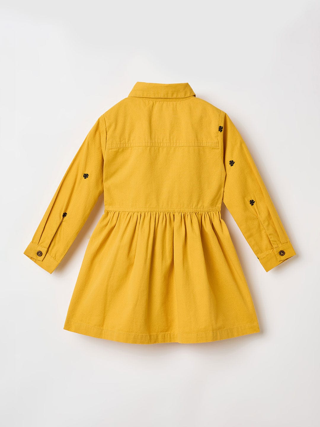 Blue Giraffe Girls Black Embroidered Round Neck Dress