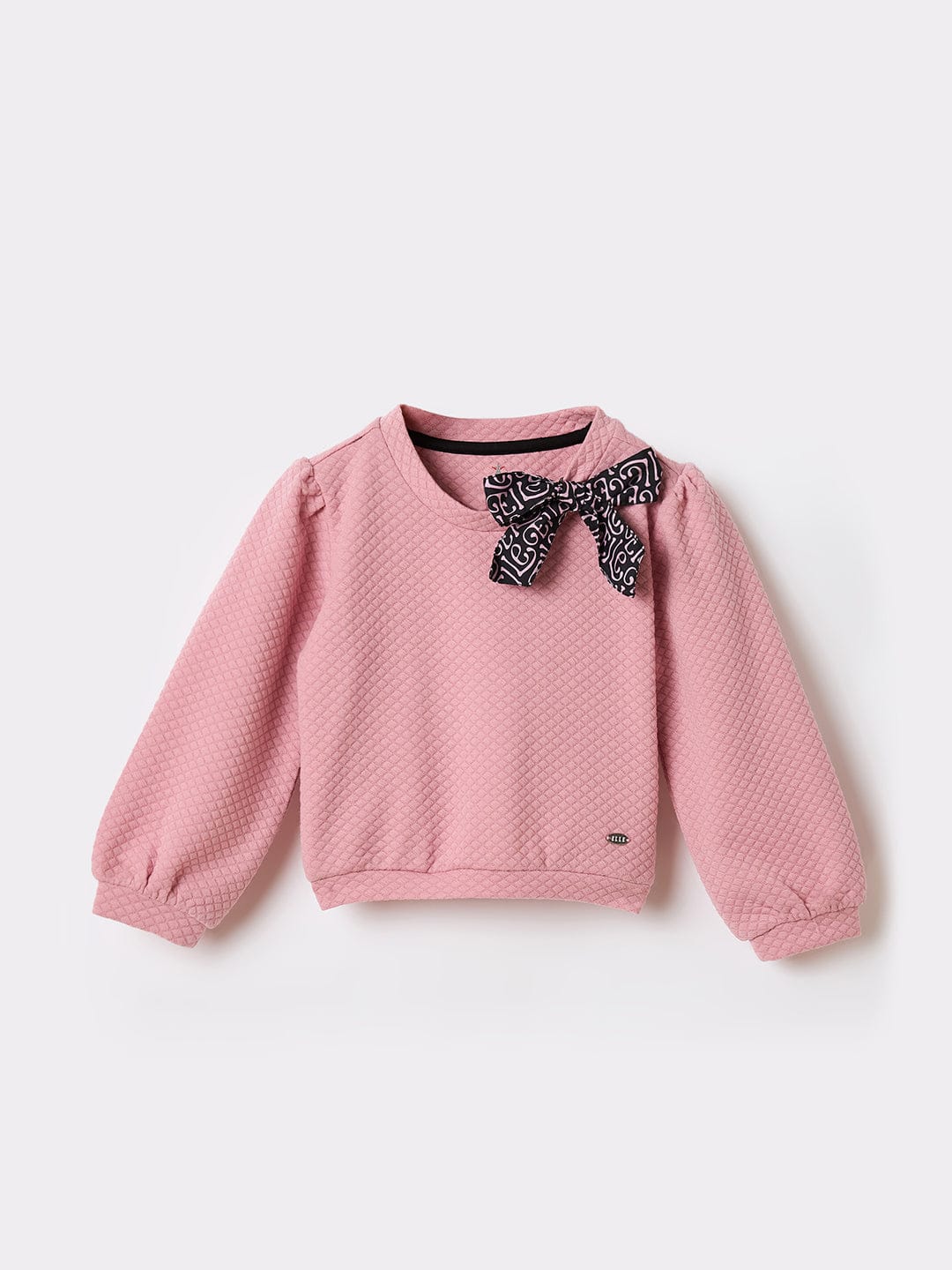 Elle Kids Pink Solid Round Neck Sweatshirt
