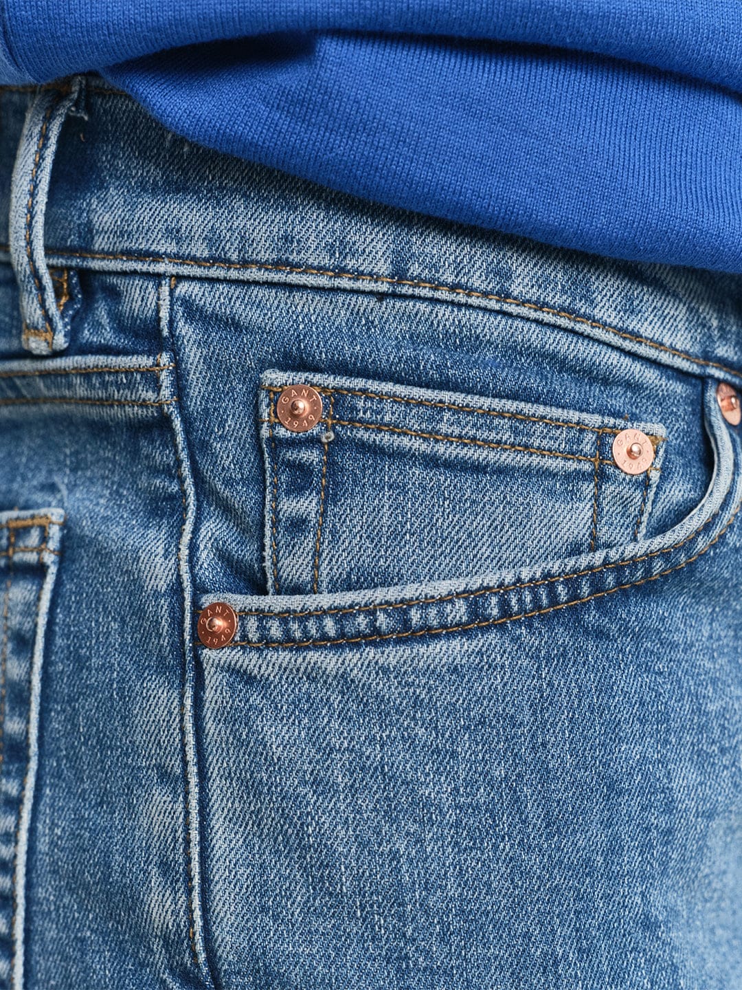 Mid blue worn-in shade gives these jeans a natural lived look that stays in trend. Designed with four pockets and a clean wash finish they keep style simple yet polished. Made with cotton polyester and elastane fabric blend they offer comfort with a slight stretch. Easy to pair with shirts or tees for daily wear.