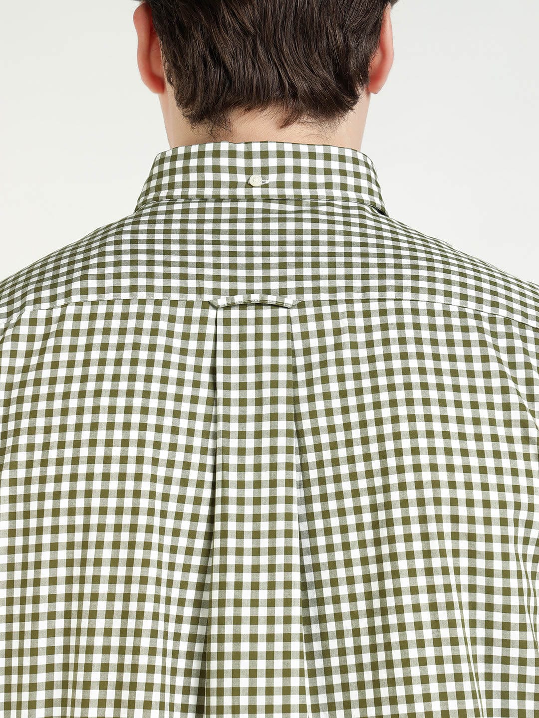 This GANT Men Olive cotton woven checked shirt crafted from soft cotton.This button-down collar shirt features a timeless check pattern and long sleeves for a classic yet stylish look. The regular fit ensures all-day comfort, making it perfect for both casual and formal occasions. Add a touch of sophistication to your ensemble with this versatile and effortlessly chic shirt.