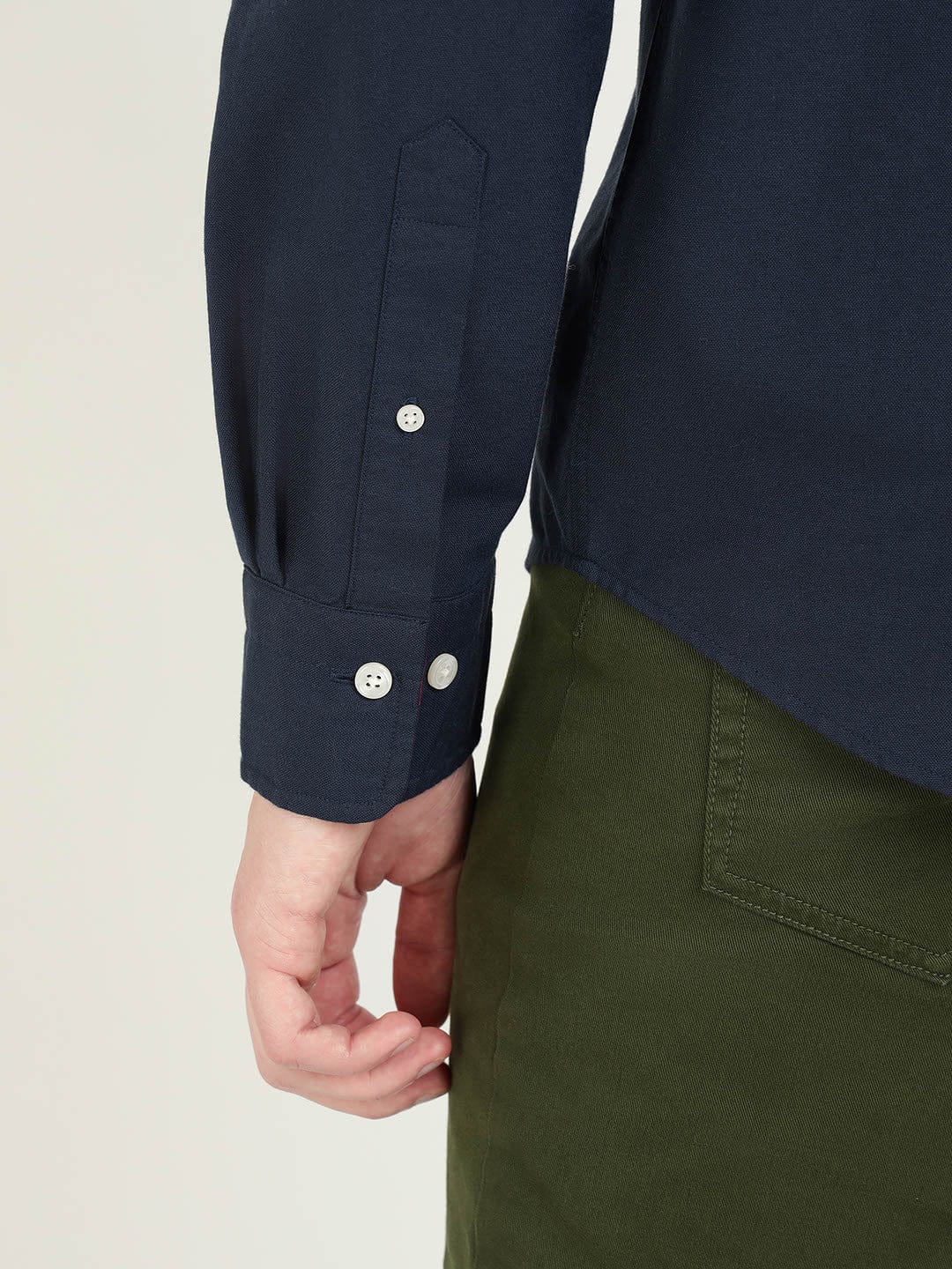 Elevate your wardrobe with the GANT Men's Blue Cotton woven shirt. Crafted from premium cotton. This button-down collar shirt offers a sleek, polished look with its solid design and long sleeves. The regular fit ensures a comfortable and flattering silhouette, making it a versatile addition to your collection. Whether you are dressing for the office or a casual outing. This shirt exudes sophistication and style. Upgrade your attire with this timeless piece that seamlessly transitions from day to night.