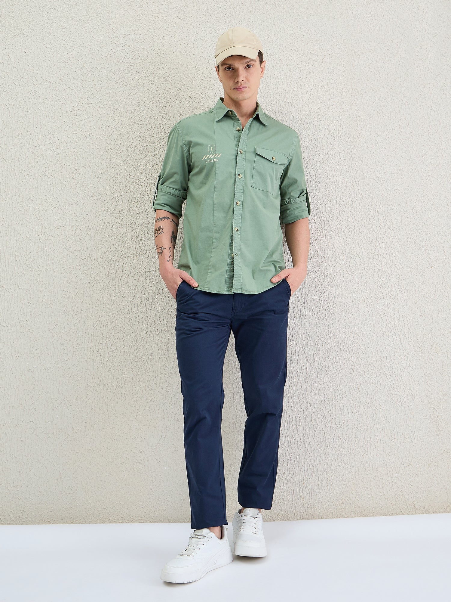 Discover the perfect blend of style and comfort with our overdyed green shirt for men. Crafted from a premium cotton blend fabric, this shirt offers a regular fit that ensures ease of movement while maintaining a sleek silhouette. The solid pattern and full sleeves make it a versatile addition to any wardrobe, suitable for both casual and formal occasions. Featuring a classic spread collar and secure button closure, this shirt is designed for the modern man who values both fashion and functionality. Elevate your look effortlessly.