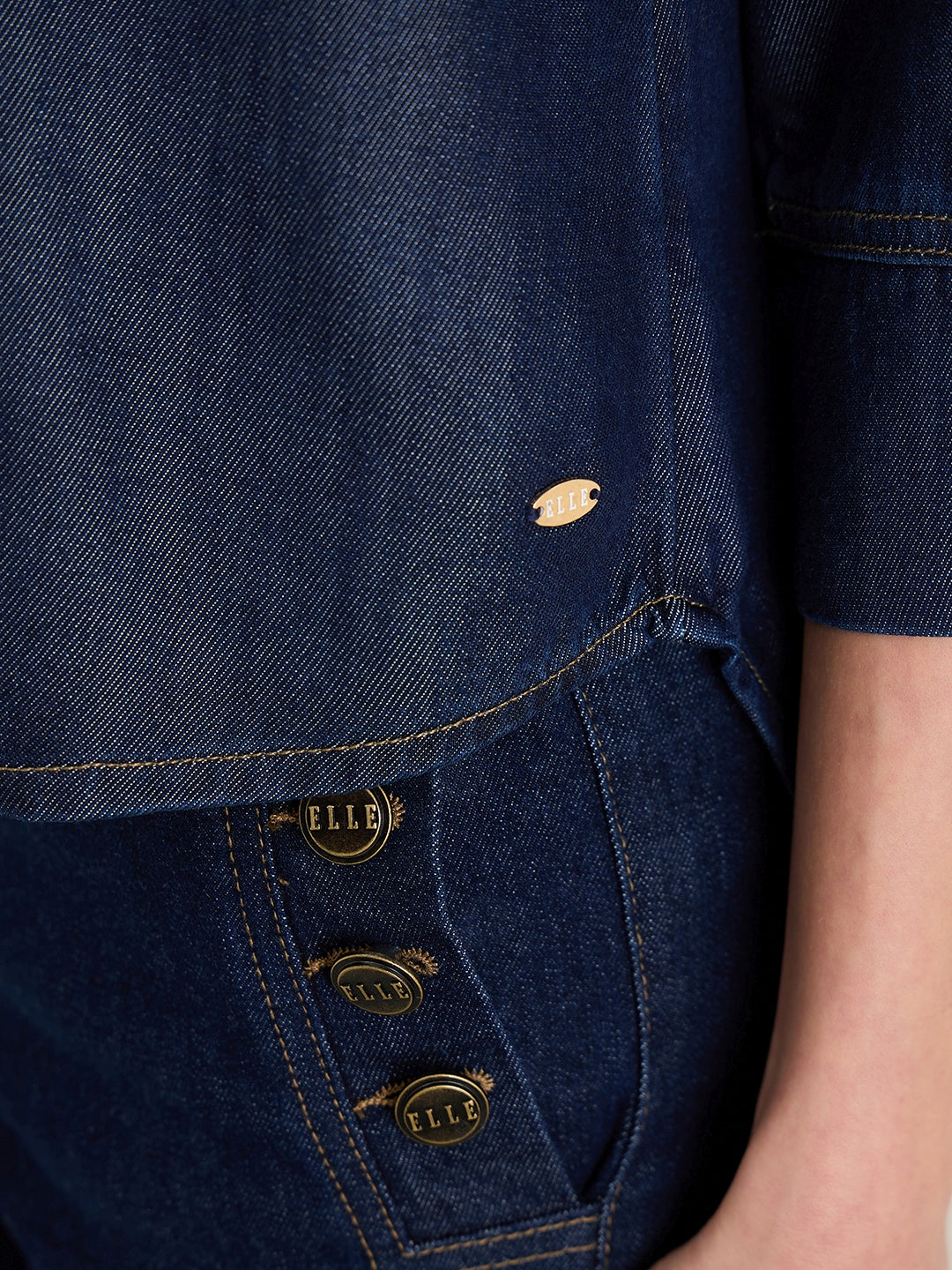 Elevate your wardrobe with the ELLE Women's Navy Blue Shirt Collar Top. This versatile piece exudes sophistication and style, perfect for both casual and professional settings. Crafted from high-quality materials, this top offers a comfortable fit that flatters every figure. The classic shirt collar adds a touch of elegance, while the navy blue color is timeless and easy to style. Whether you are dressing up for a day at the office or a night out with friends, this top is sure to make a statement. Upgrade your look with the ELLE Women's Navy Blue Shirt Collar Top today.