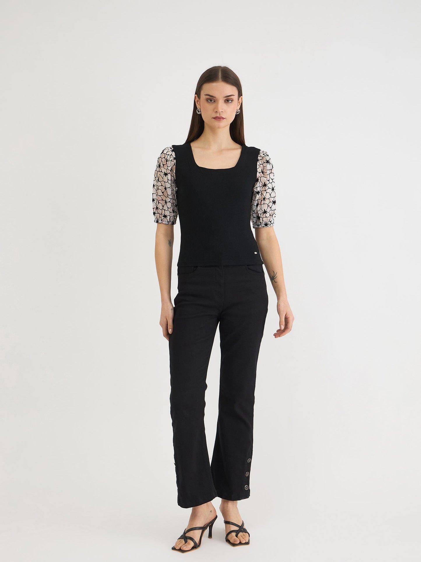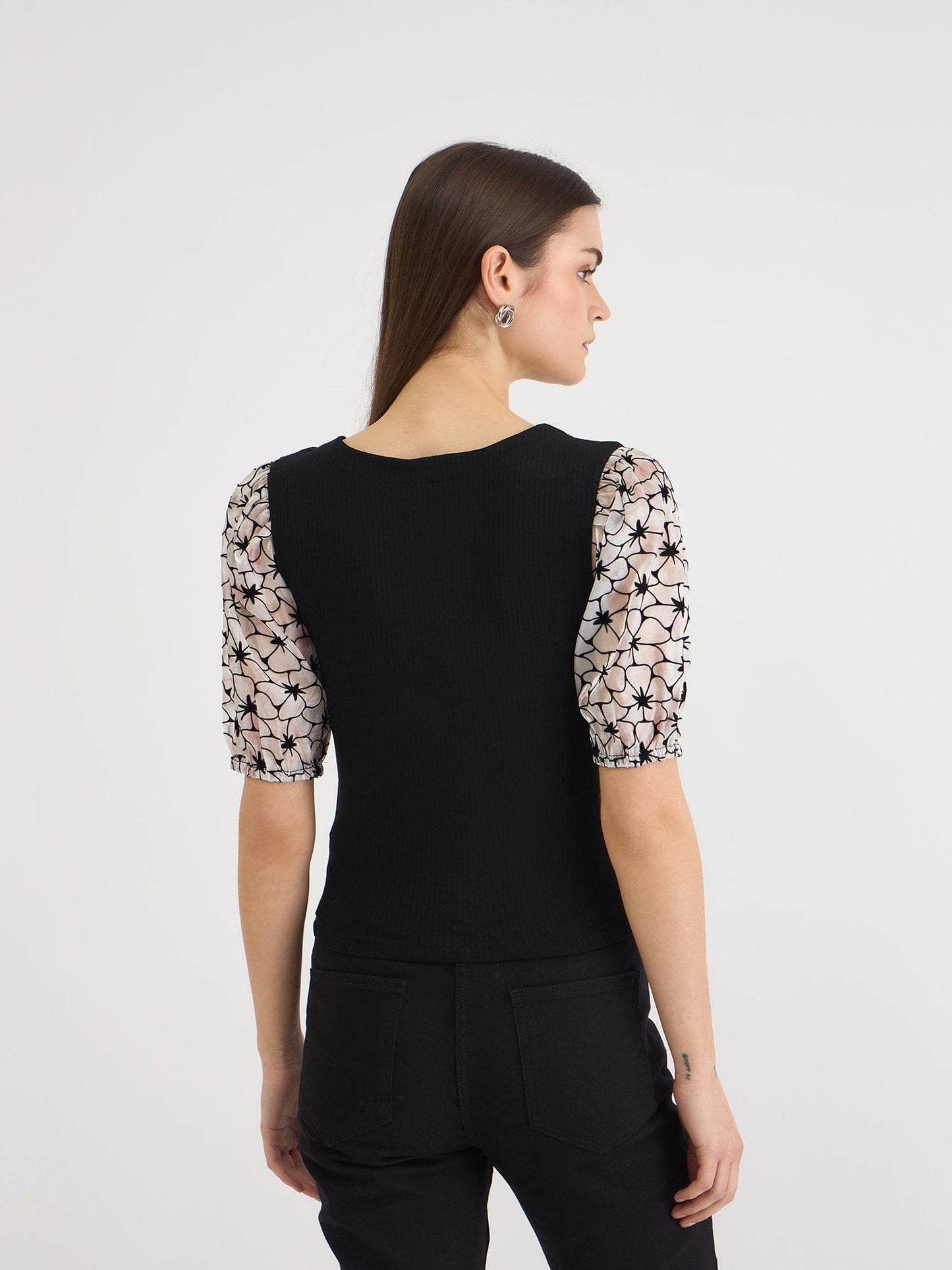 This regular top is a must-have for your wardrobe it features a fitted floral pattern and short sleeves the square neck adds a touch of elegance while the organza sleeves provide a delicate and feminine touch the top is made from polyester fabric which is both comfortable and easy to care for the pull on closure makes it easy to get on and off the stretchable fabric ensures a comfortable fit