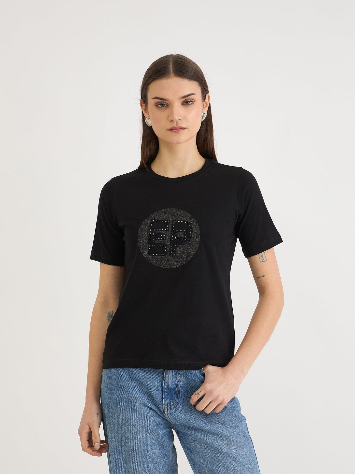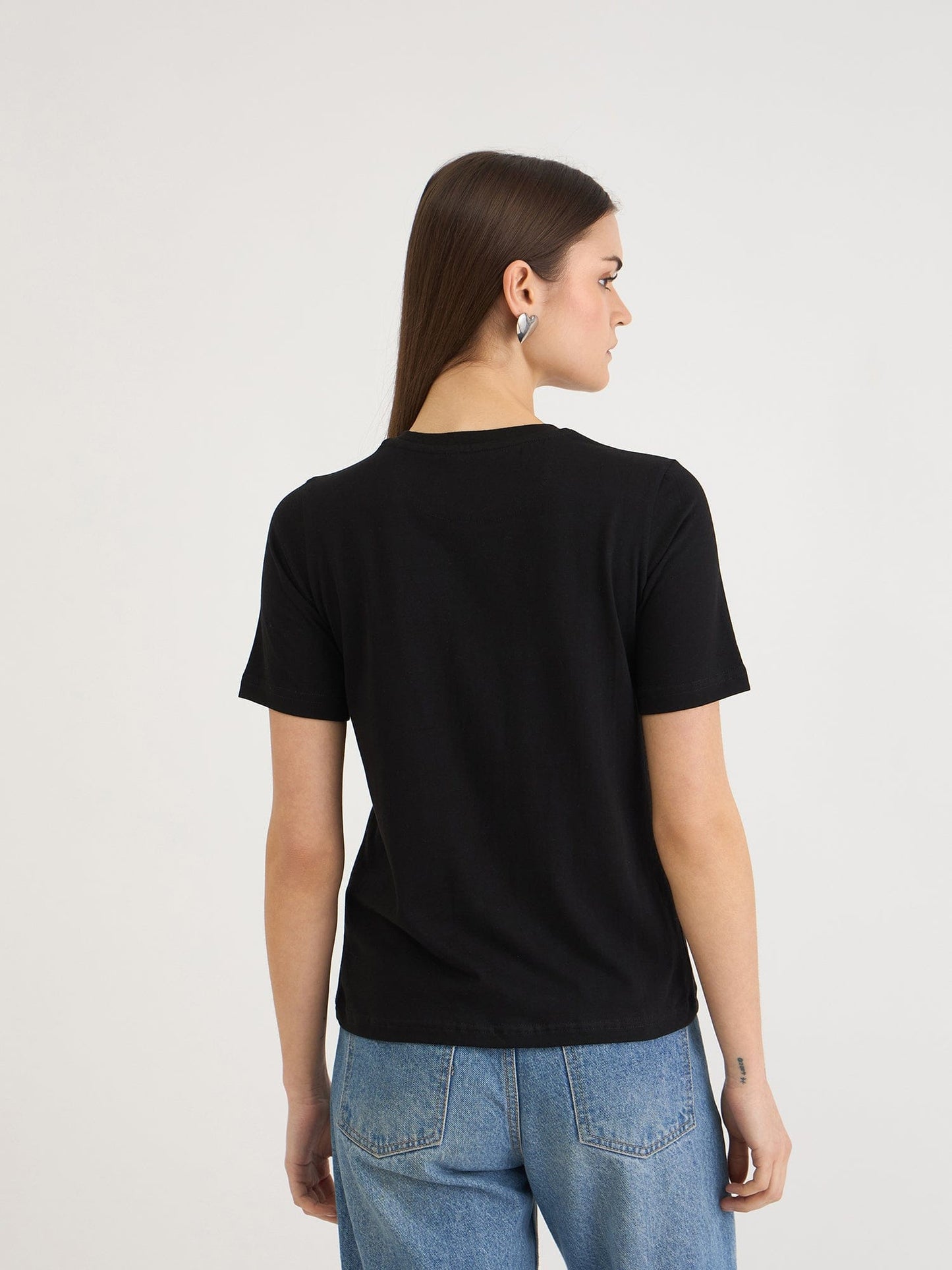This basic black crew neck t-shirt is a wardrobe essential. Made from pure cotton it is soft and comfortable to wear. The relaxed fit and short sleeves make it perfect for everyday wear. The branding on the chest adds a touch of style. This t-shirt is also stretchable for a perfect fit. Pull on closure makes it easy to wear.
