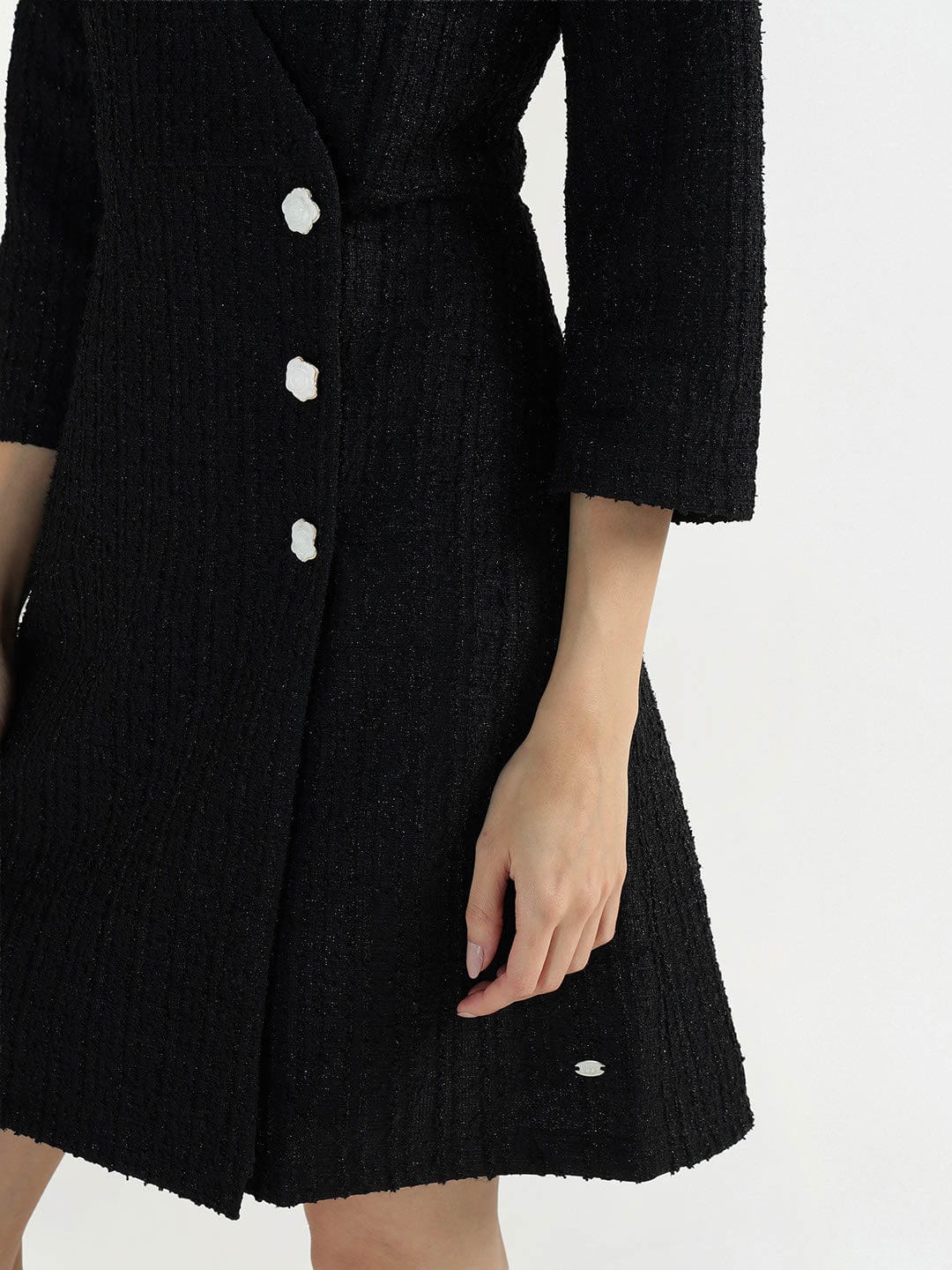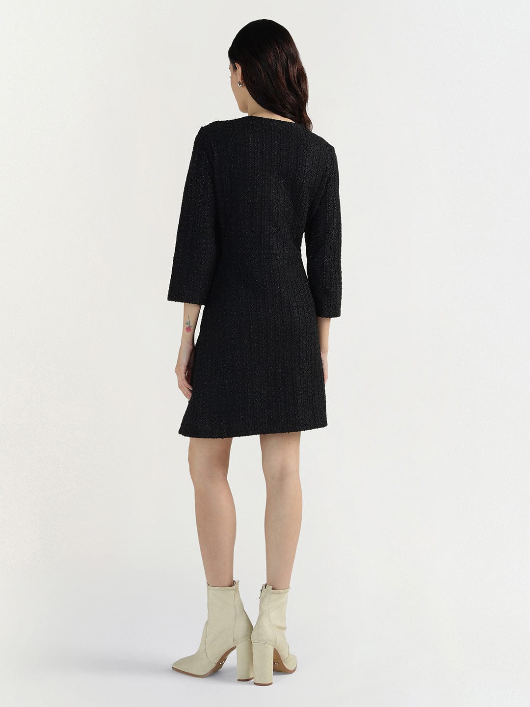 Crafted in polyester this dress offers a clean solid look. The V-neck and button details add structure while 3/4 sleeves make it season-friendly.