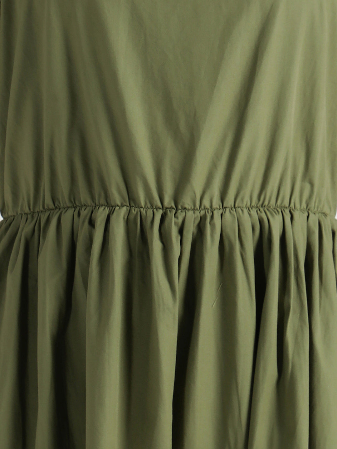 The v-neckline & half sleeves make this dress easy to wear for casual outings. Made up of cotton fabric gives it light breathable feel. Smocking at the waist adds shape while keeping it comfortable. Calf length with a side zipper makes it practical and simple to carry. Solid olive tone follows the seasonal fashion trend.