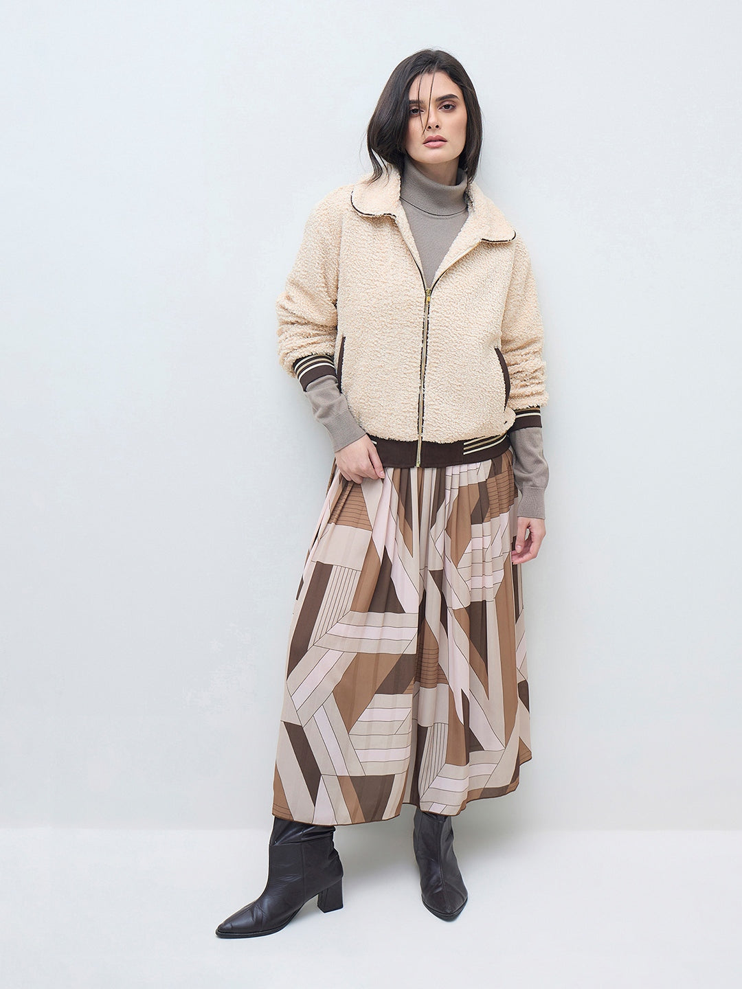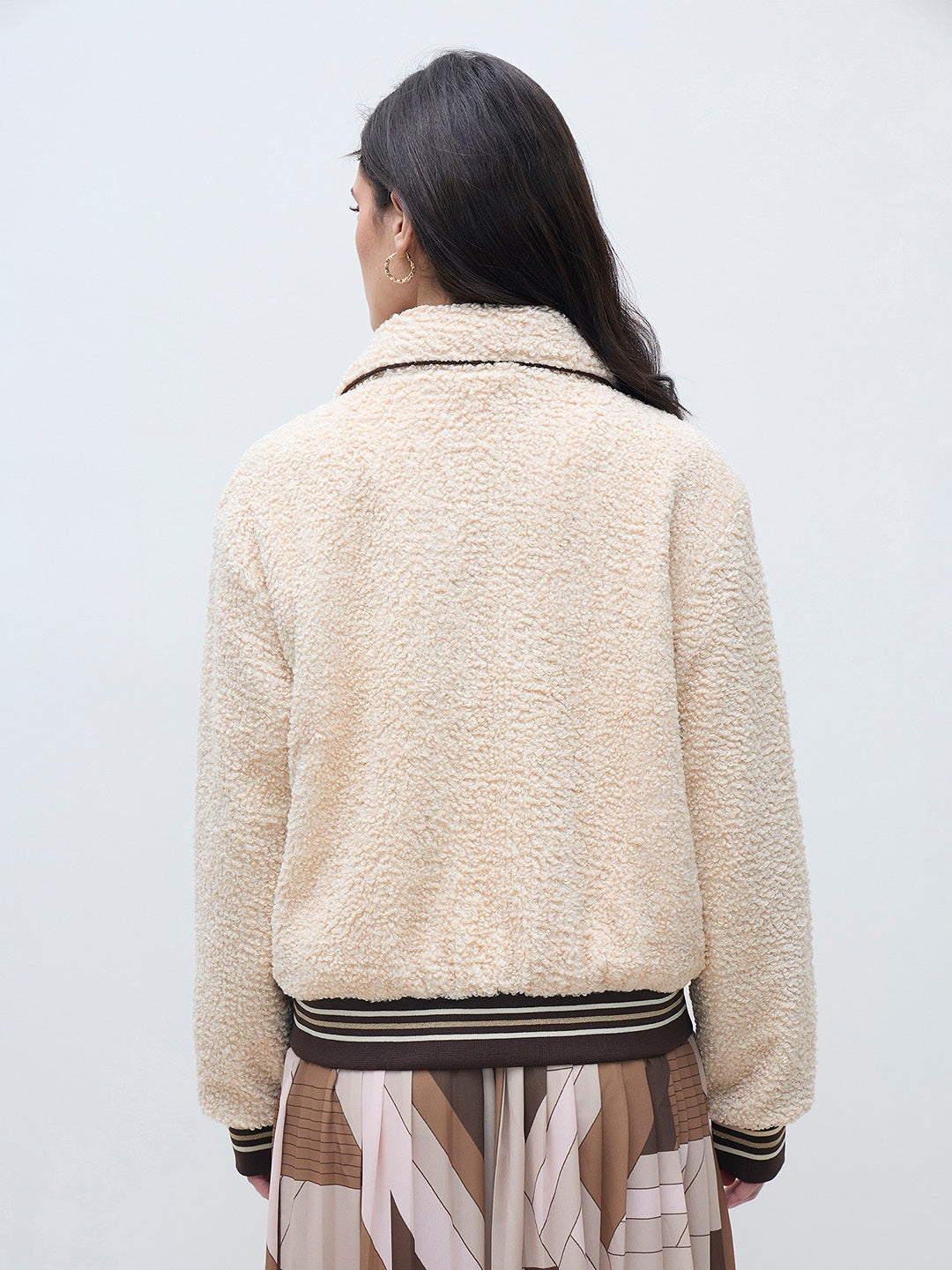 ELLE Women Cream Solid Shirt Collar Jacket
