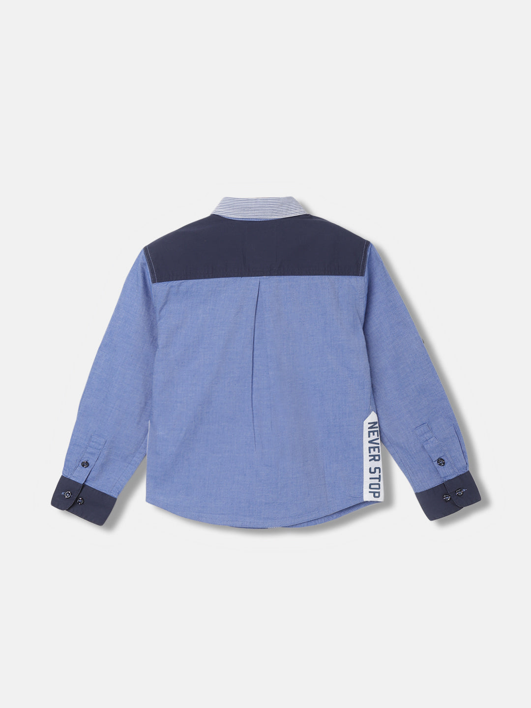 Boys Blue Color-Blocked Spread Collar Full Sleeves Shirt