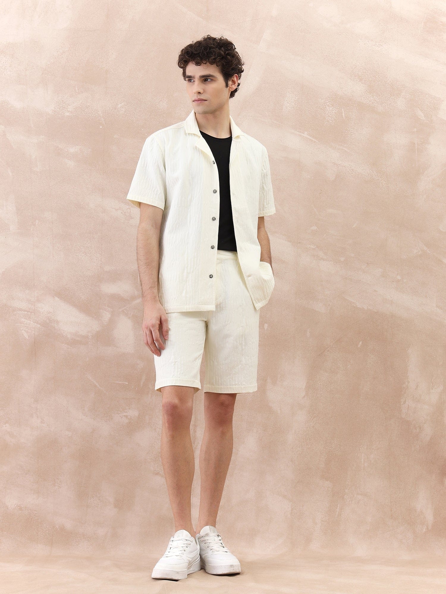 Discover the perfect blend of style and comfort with our men's white shorts. Crafted from premium cotton fabric, these shorts offer a regular fit that ensures ease of movement. The textured pattern adds a touch of sophistication, making them ideal for both casual outings and more polished occasions. Featuring a mid-rise design and secure button closure, these shorts provide a flattering silhouette and reliable fit. Pair them with your favourite shirt or tee for a versatile look that keeps you cool and confident all day long.