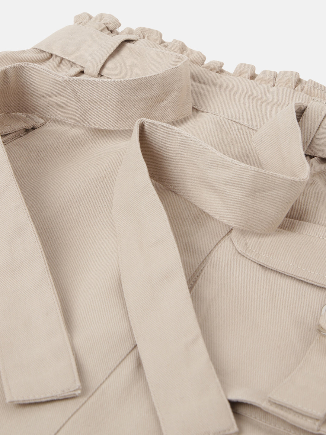 Chic in simplicity, this beige skirt for girls boasts a timeless solid pattern. Its regular fit flows gracefully, while the elasticated closure ensures a snug, comfortable fit. Perfect for versatile styling, it's a wardrobe staple that blends elegance with ease.