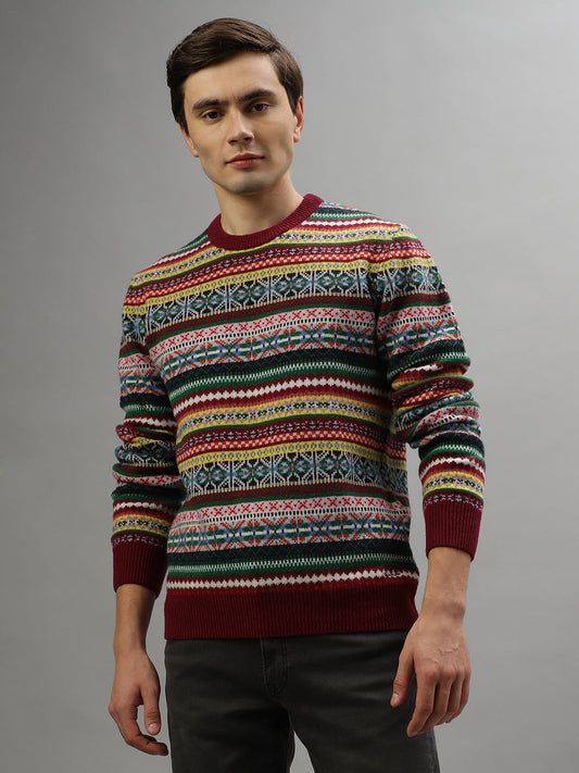 Blue Giraffe Boys Off White Printed Round Neck Full Sleeves Pullover Style Sweater