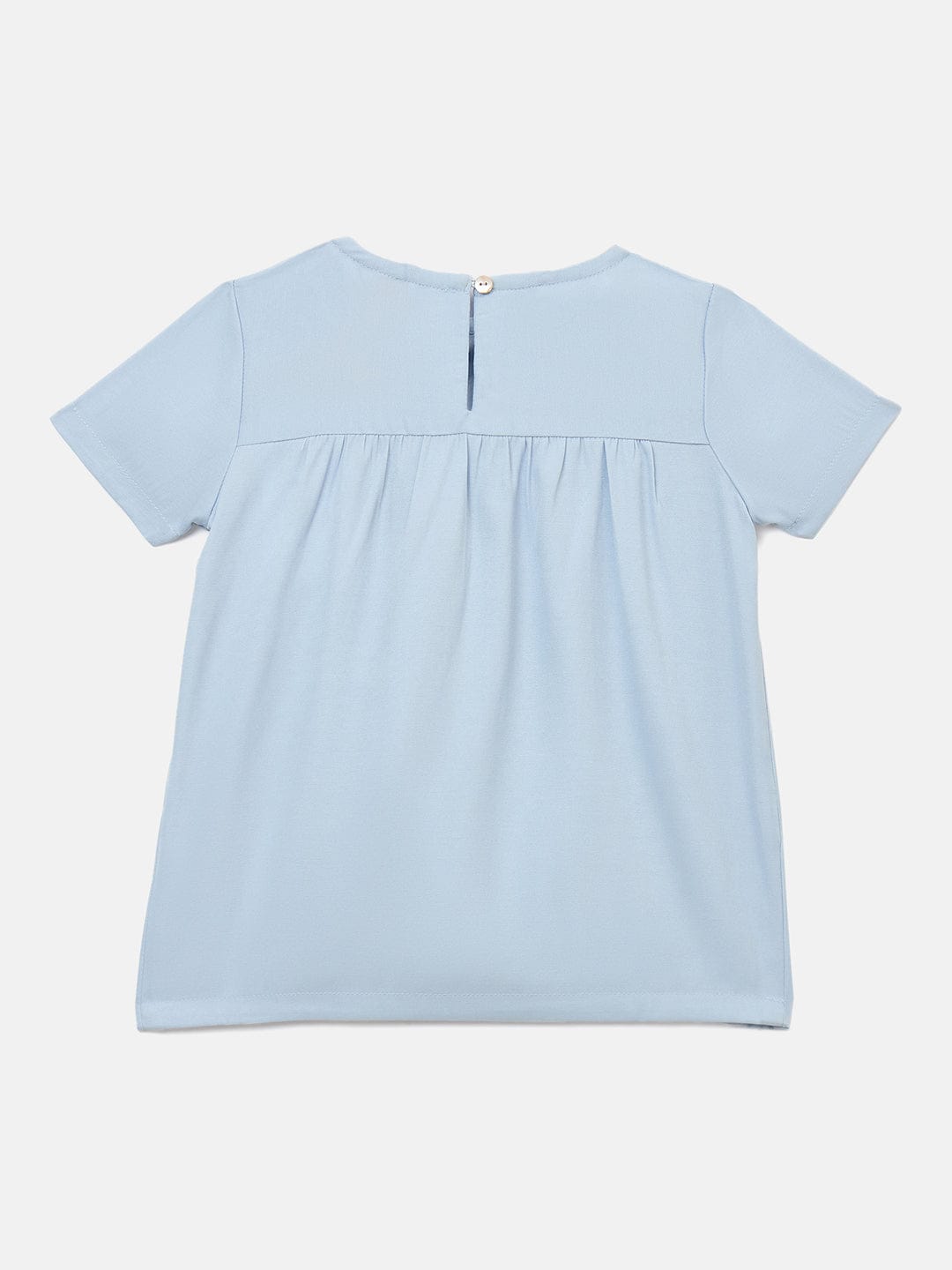 Blue Giraffe Girls Blue Solid Round Neck Top