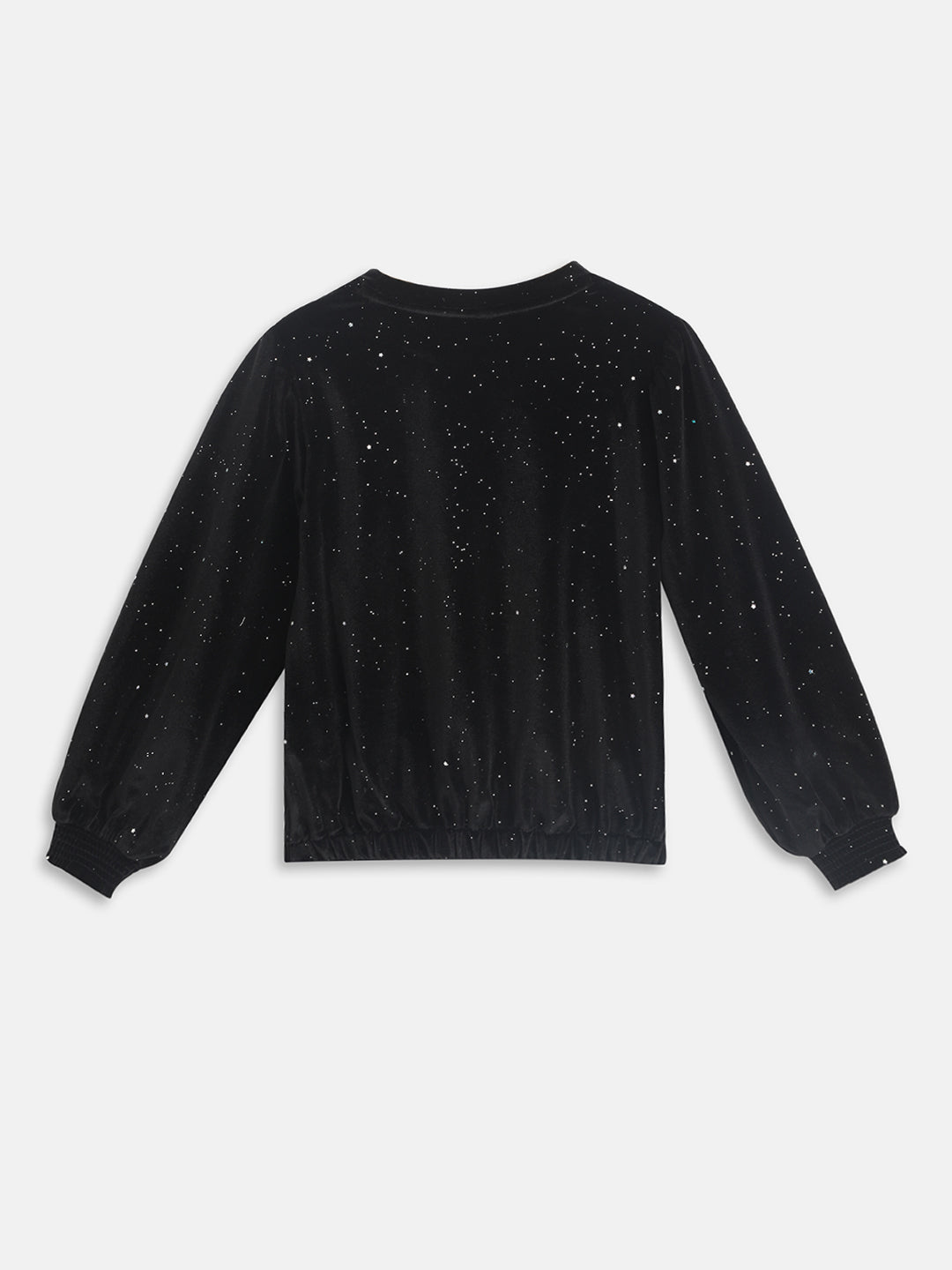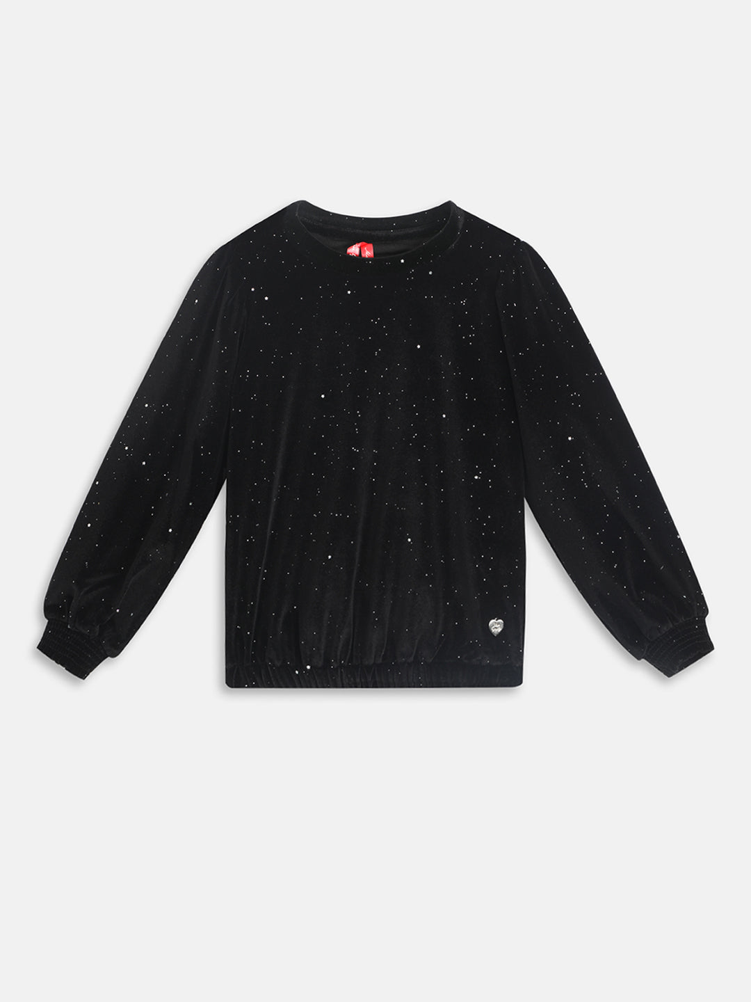 Stylish and comfortable, this black printed top is perfect for girls. Featuring a regular fit, full sleeves, round neck, and pull-on closure, it's made from soft and breathable polyester fabric.