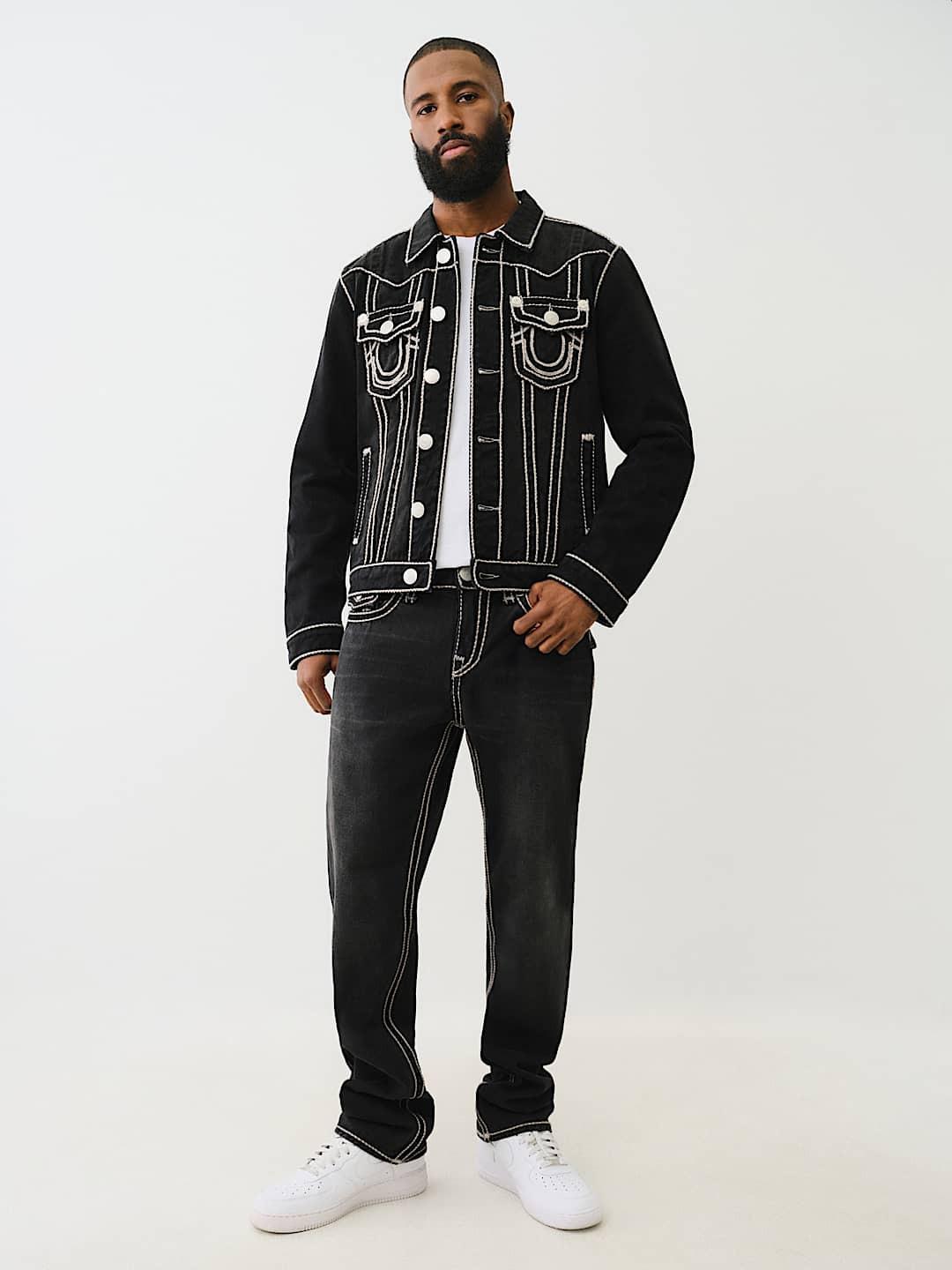 Effortlessly cool, these black straight-fit jeans are your new go-to. Crafted from pure cotton, the washed pattern adds a vintage touch. The mid-rise waist and classic button and zip closure ensure a comfortable and flattering fit. Perfect for casual days or dressed-up nights, these jeans are a wardrobe essential.