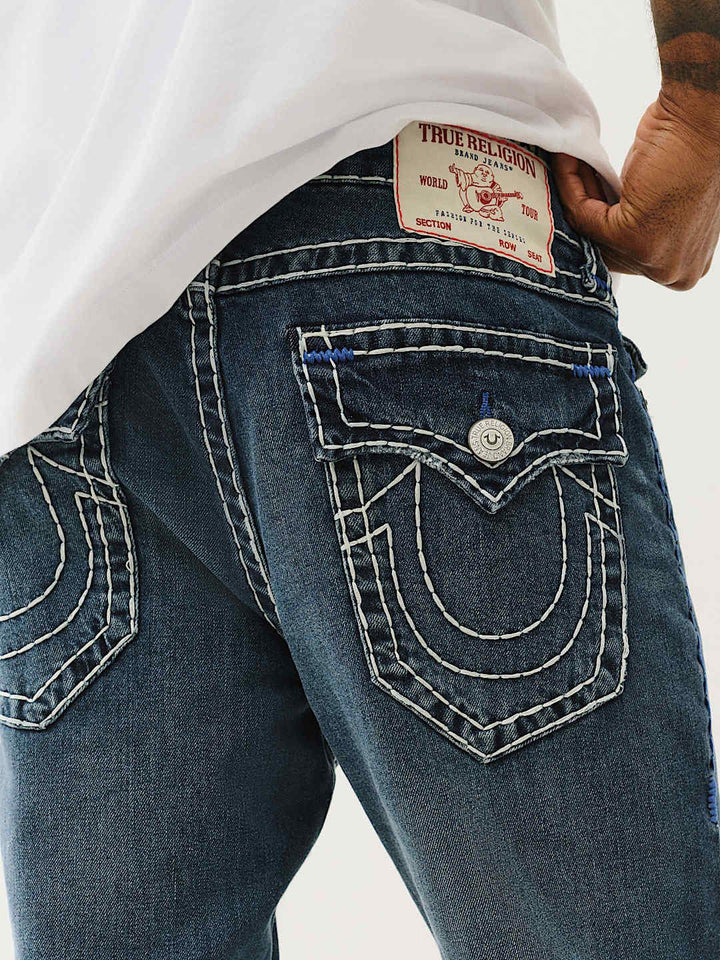 True Religion Men Blue Classic Point Collar Full Sleeves Contrast Stitching Denim Shirt