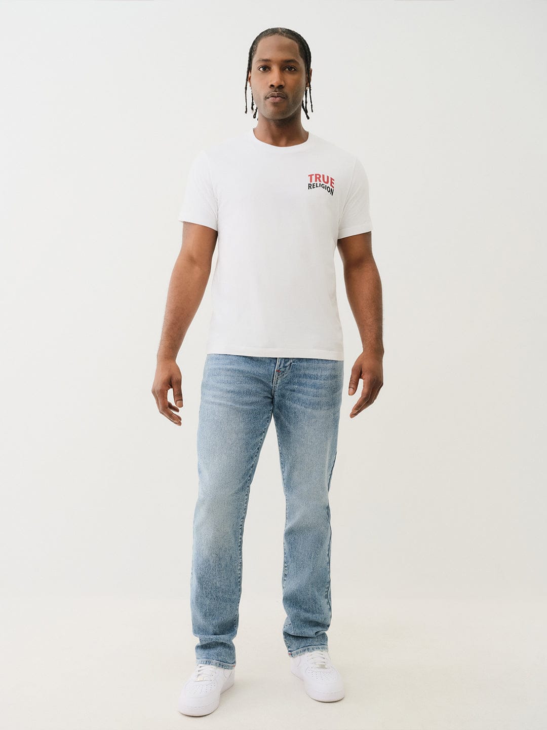 Classic comfort meets modern style in these straight-fit blue jeans. Crafted from soft, breathable cotton, they offer a timeless look with a mid-rise waist and a button and zipper closure. The solid pattern and straight fit create a versatile silhouette that complements any outfit, from casual to smart casual.