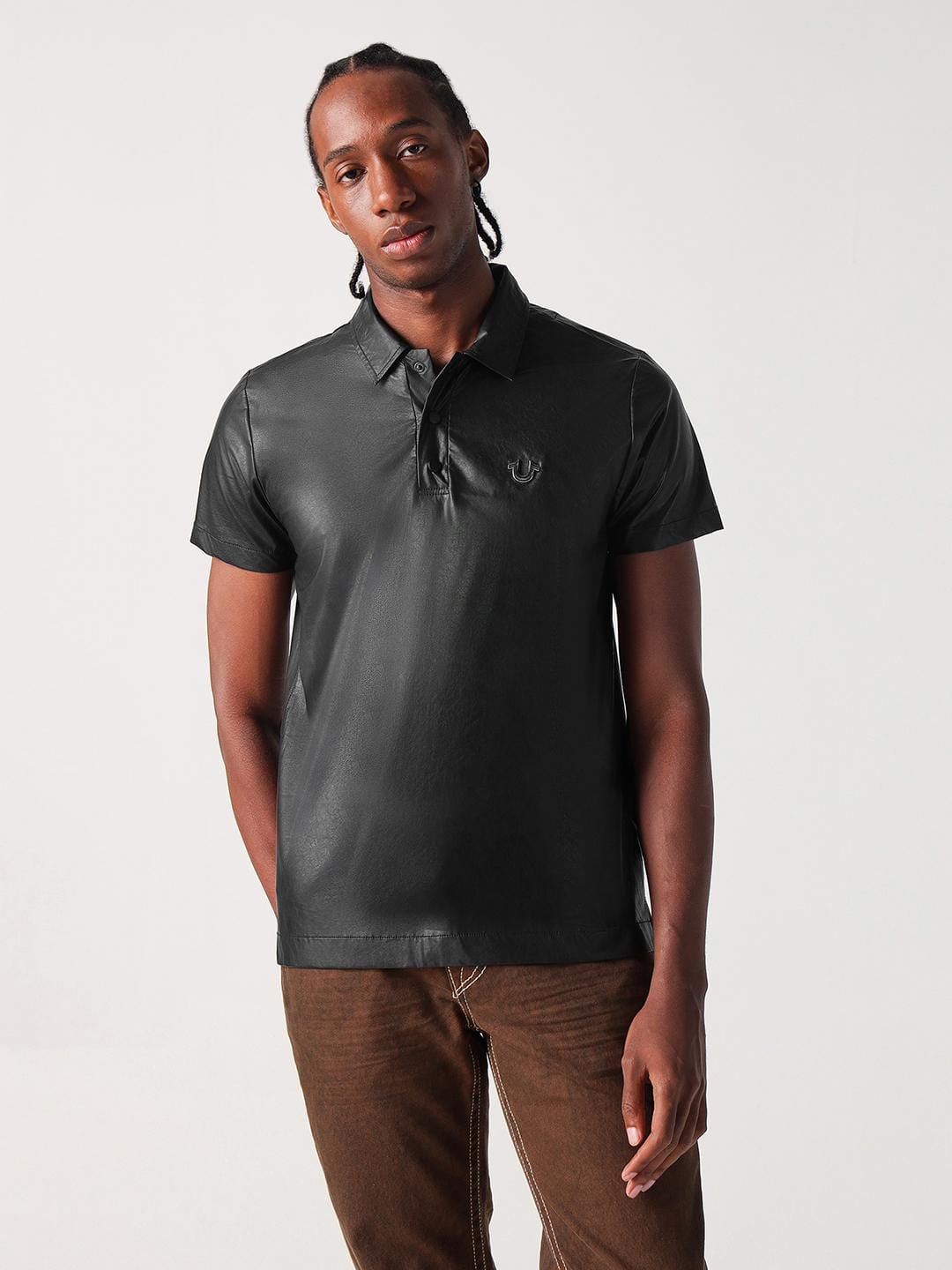 Elevate your casual wardrobe with TRUE RELIGION's Men Black Polyester solid Polo neck T shirt. Crafted from high-quality polyester knit. This polo shirt features a sleek buttoned neckline, short sleeves, and a regular fit for ultimate comfort. Perfect for both lounging and socializing. This versatile piece offers a modern twist on a classic style. Whether you are hitting the town or relaxing at home. This polo shirt effortlessly combines style and comfort for the fashion-conscious man. Experience the perfect blend of sophistication and casual cool with TRUE RELIGION.
