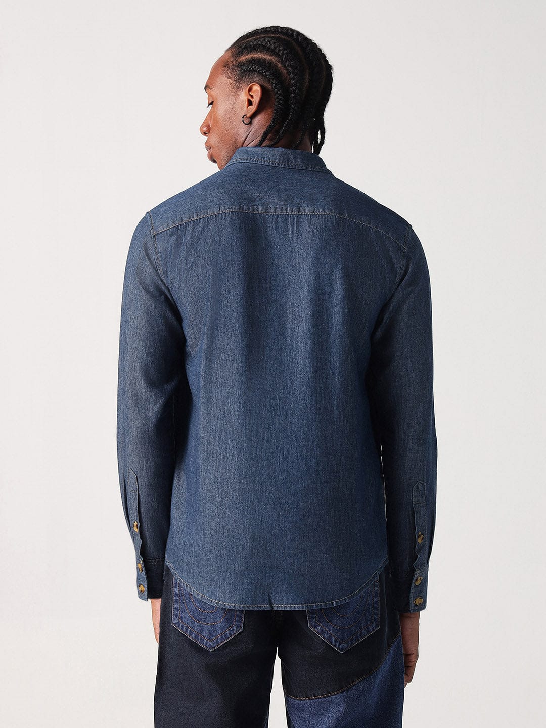 This TRUE RELIGION Men's Denim Blue Cotton shirt crafted from high-quality cotton. This solid shirt features a classic collar, long sleeves, and a regular fit for all-day comfort. The button-up design adds a touch of sophistication, making it perfect for both work and weekend wear. Whether you are dressing up for a night out or keeping it casual. This versatile shirt is a must-have staple for any modern man's closet. Experience style and quality with TRUE RELIGION.