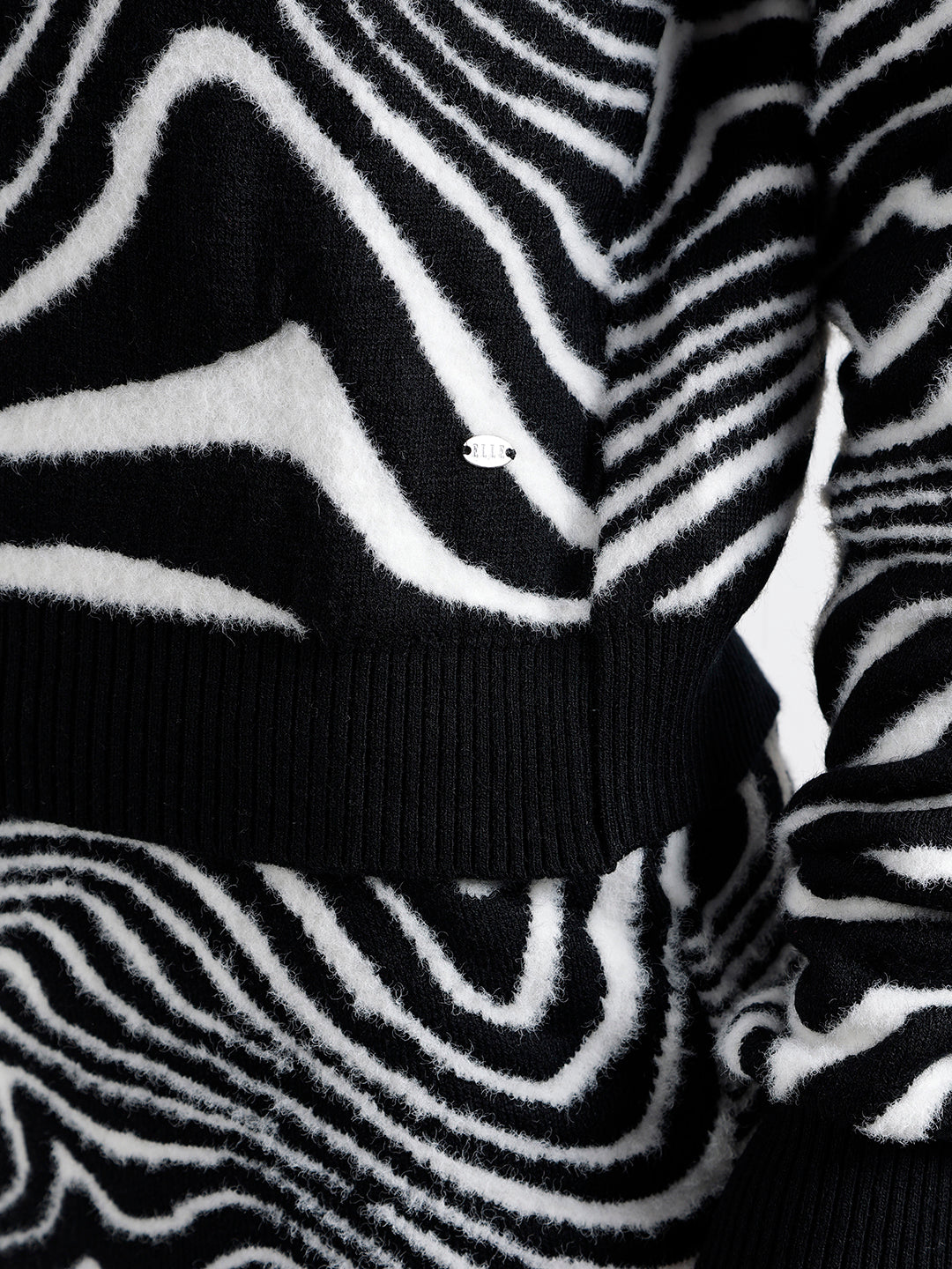 Elle Women Black Printed Round Neck Full Sleeves Pullover Style Sweater