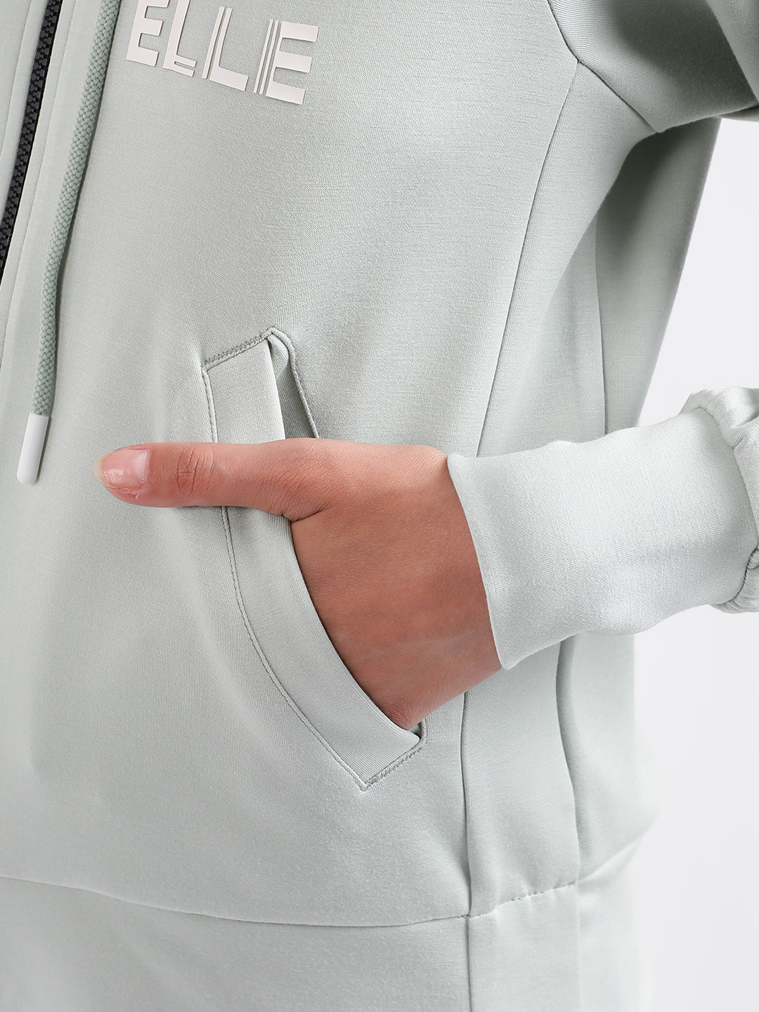 Elle Women Green Solid Hooded Full Sleeves Zip Through Hoodie