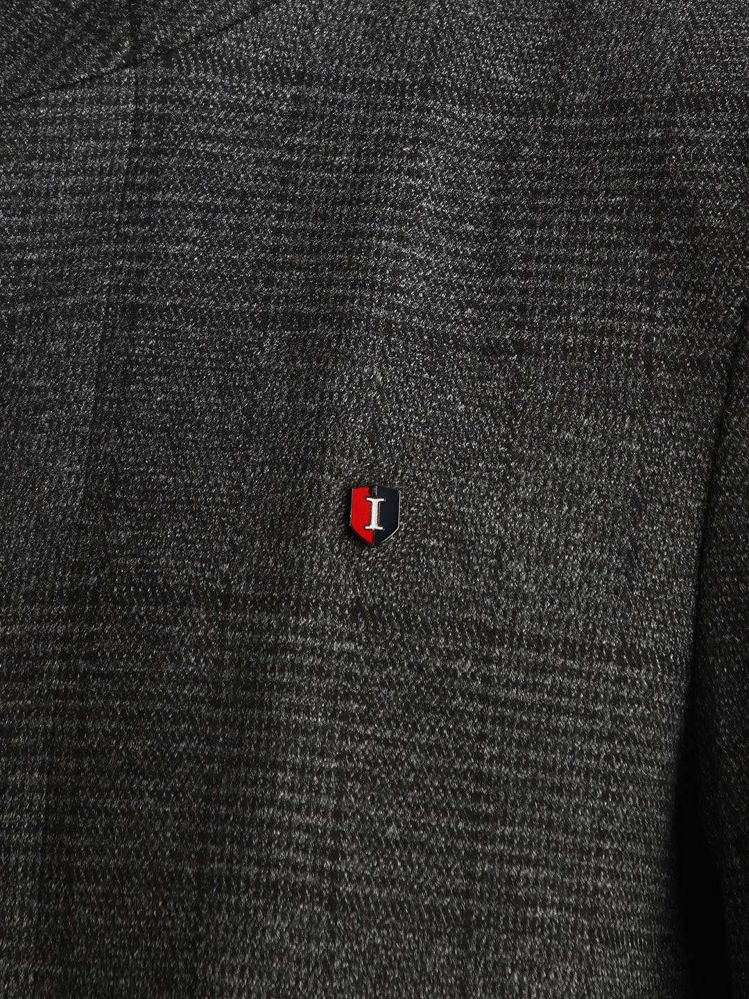 Iconic Men Black Checked Stand Collar Full Sleeves Coat