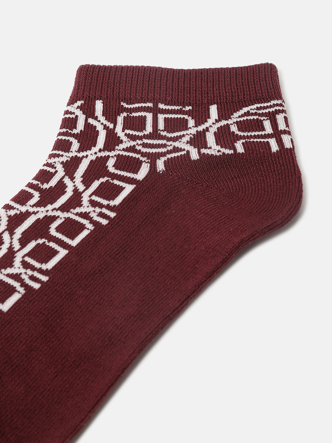 Women Red Patterned Ankle Length Socks (Pack of 3)