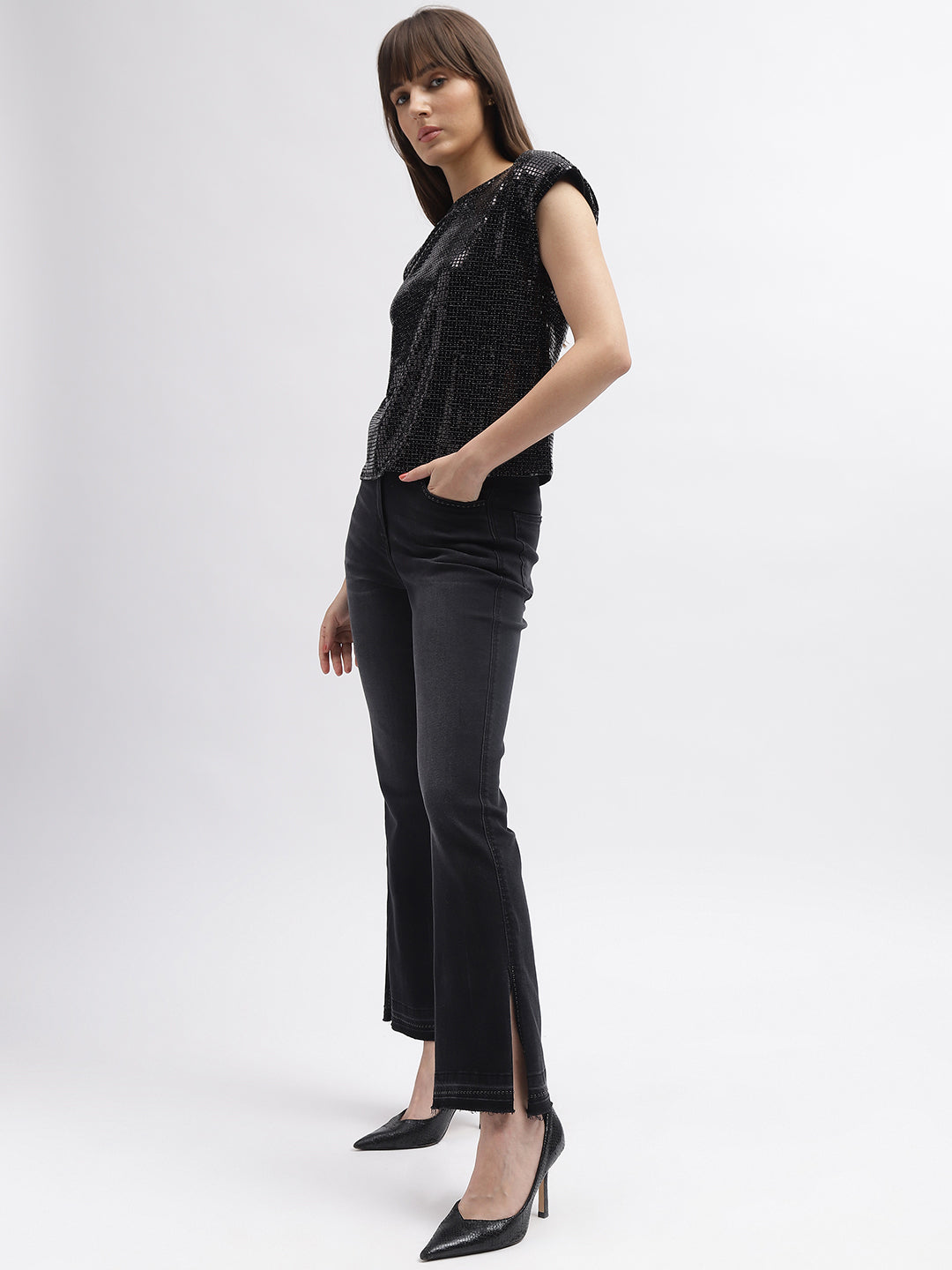 Elle Women Black Solid Bootcut Mid-Rise Jeans