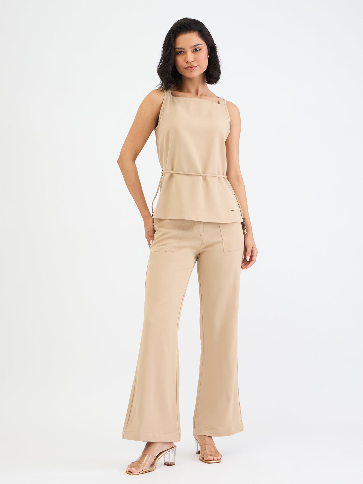 Step into effortless style with these beige bootcut pants from Elle. Made from pure cotton, they feel soft and breathable, making them perfect for long hours of wear. The solid design keeps it classic, while the button closure adds a neat, structured finish. The bootcut fit flatters your shape and pairs well with both casual and dressy tops, giving you a versatile piece for everyday dressing.