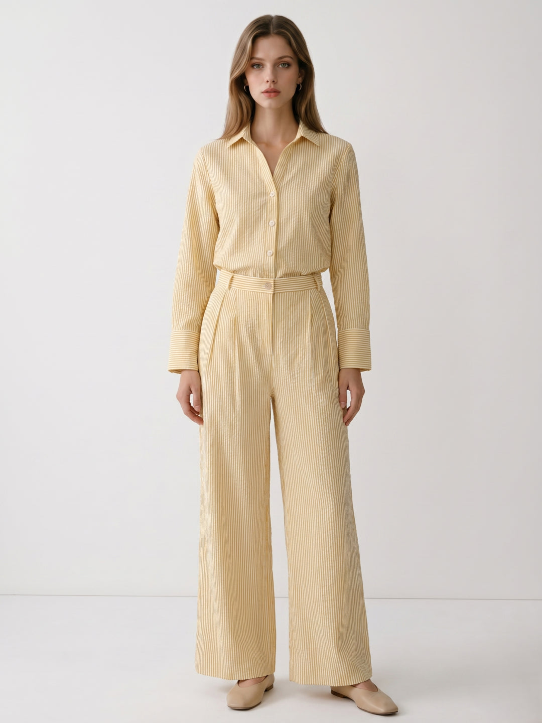 Women Yellow Striped Relaxed Fit High Rise Trousers