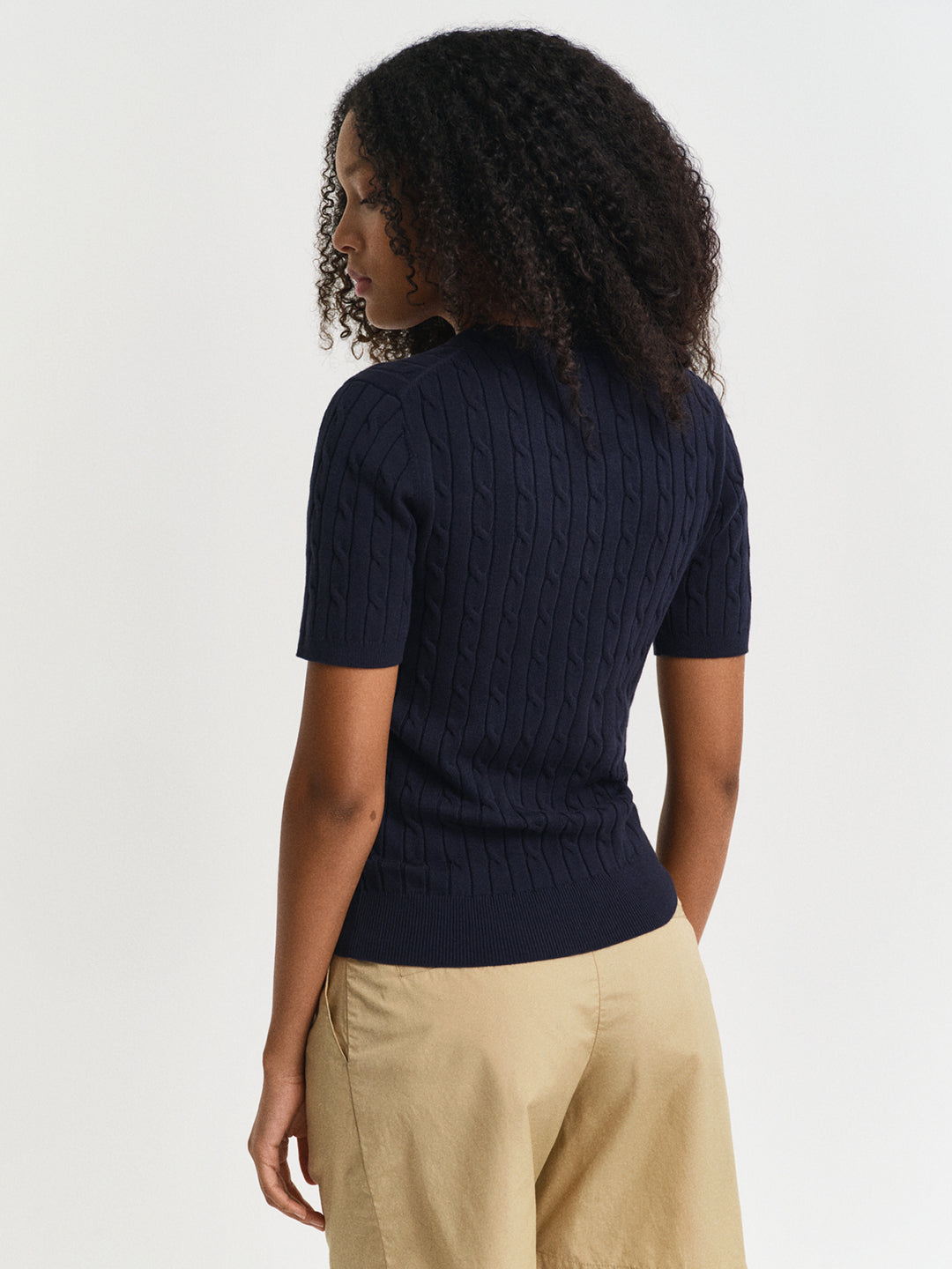 Embrace effortless style with this navy blue t-shirt. Crafted from a soft cotton blend, it drapes beautifully against your curves thanks to its slim fit. The intricate self-design pattern adds a touch of sophistication, while the short sleeves and round neck offer a timeless and versatile look. Perfect for casual days or dressed up with your favorite jeans or skirt.