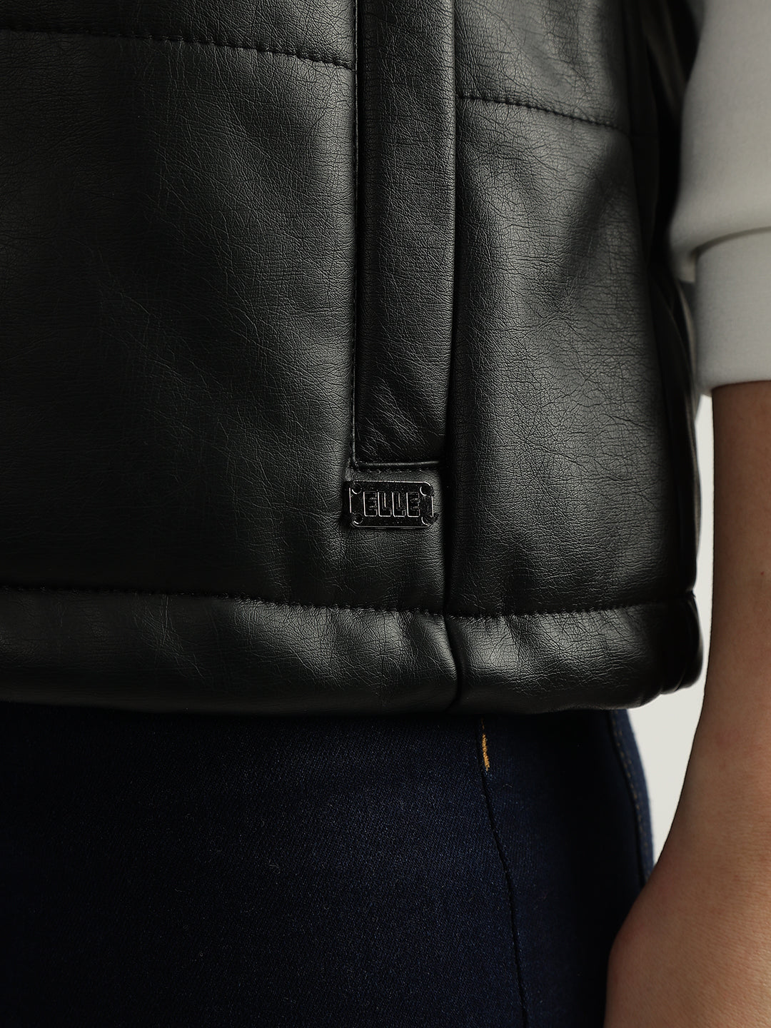 Effortlessly chic, this sleeveless hooded jacket in sleek black is crafted from soft polyester for a relaxed fit. The zip closure adds a touch of modern style, making it perfect for layering or wearing solo.
