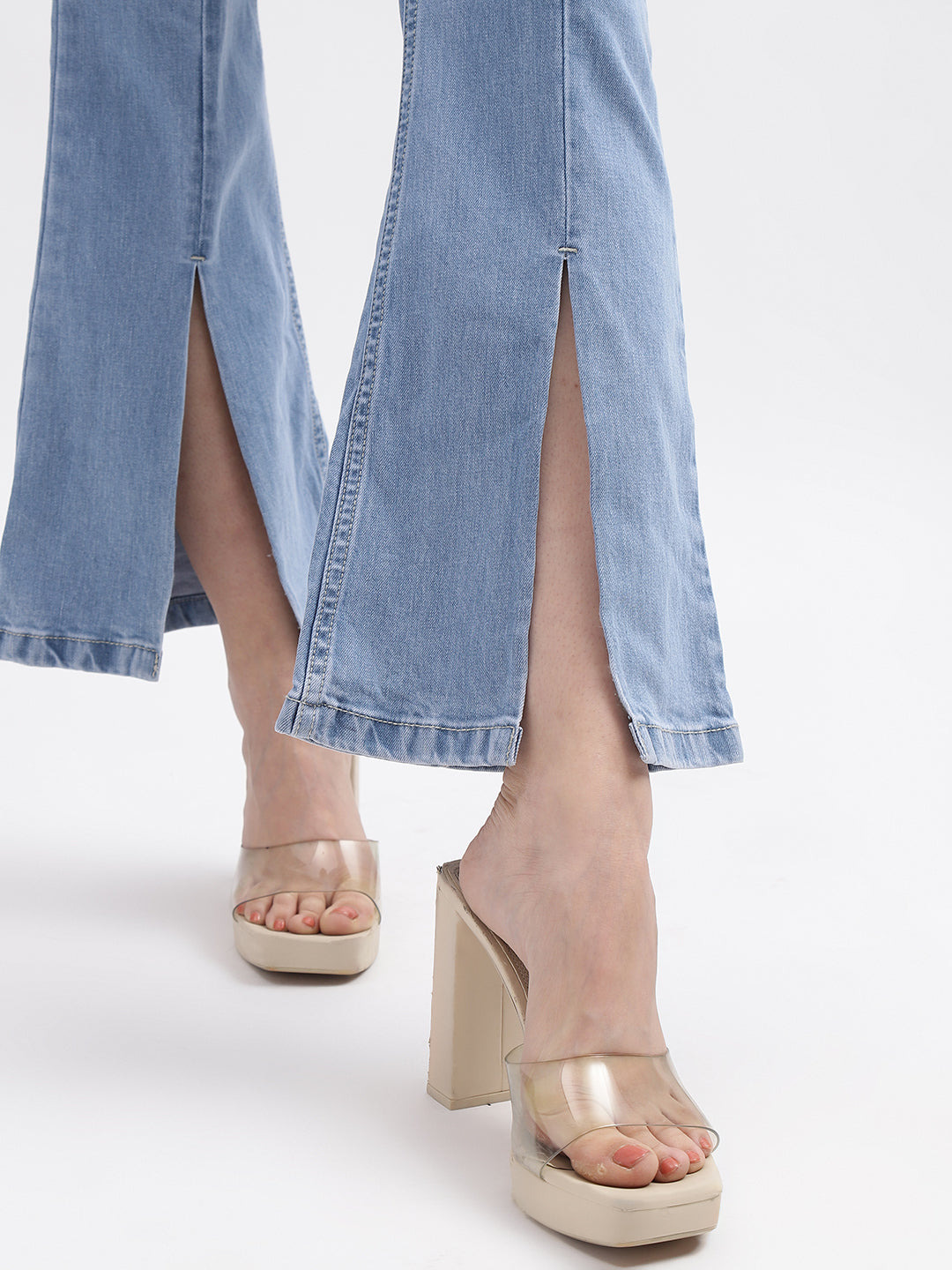 Women Blue Solid Bootcut Mid-Rise Jeans