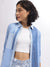 Women Blue Colour Blocked Spread Collar Full Sleeves Shirt