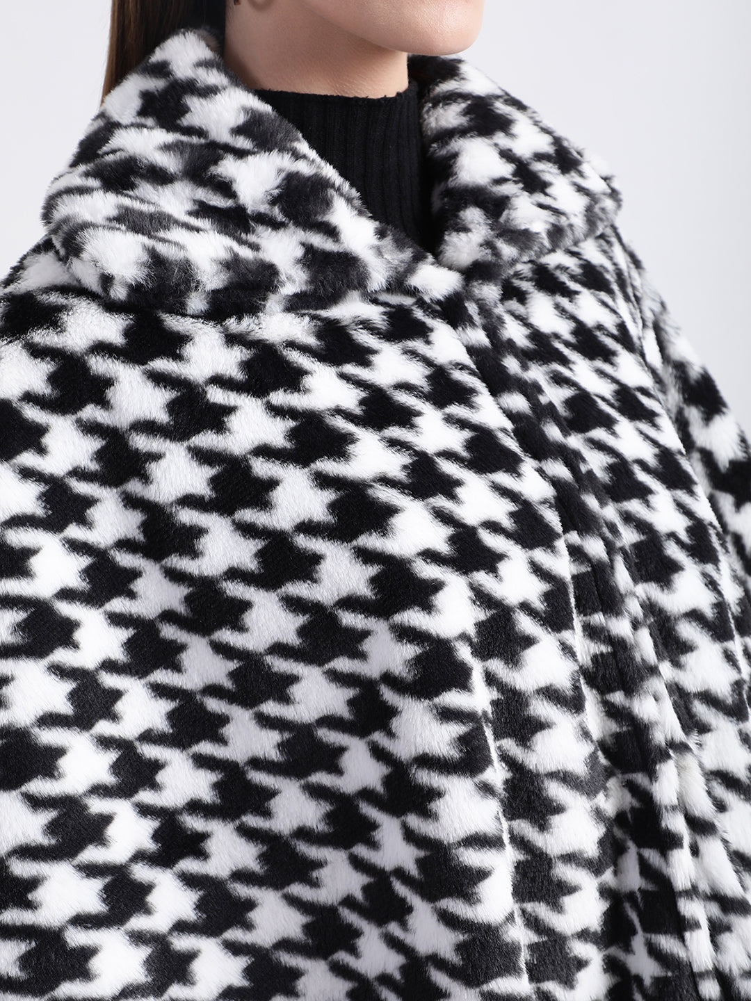 Elle Women Black Printed Collar Neck Short Sleeves Poncho Sweater