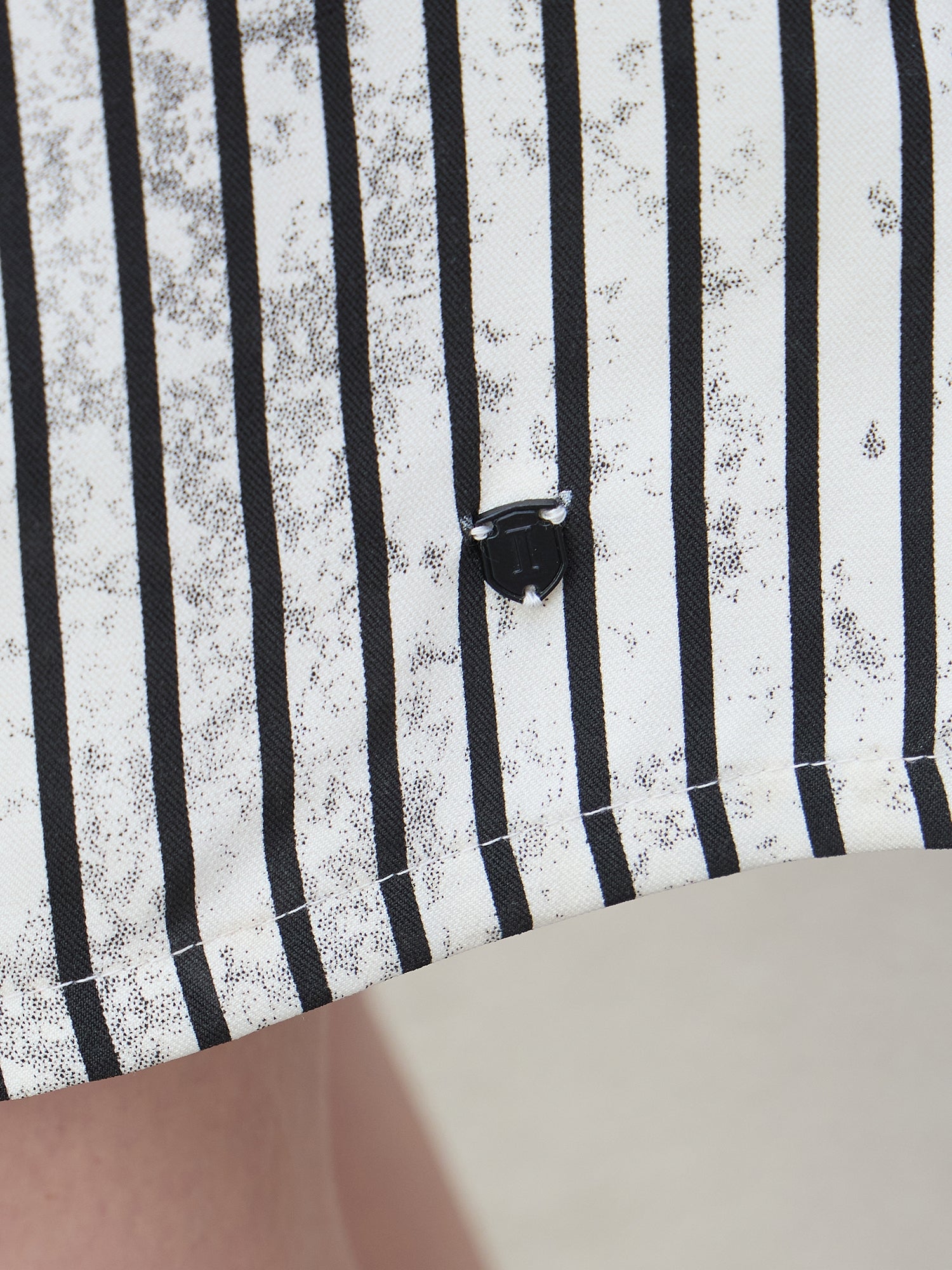 Discover the elegance of our black a-line dress, designed to enhance your wardrobe with its chic stripe play pattern. This kimono-inspired dress features a flattering straight-in striped design that adds a touch of sophistication to any occasion. Crafted from high-quality polyester fabric, it offers comfort and durability for all-day wear. The short sleeves and round neck provide a classic silhouette, while the button closure ensures a secure fit. Perfect for both casual outings and formal events, this versatile dress is a must-have for any fashion-forward woman seeking style and grace.