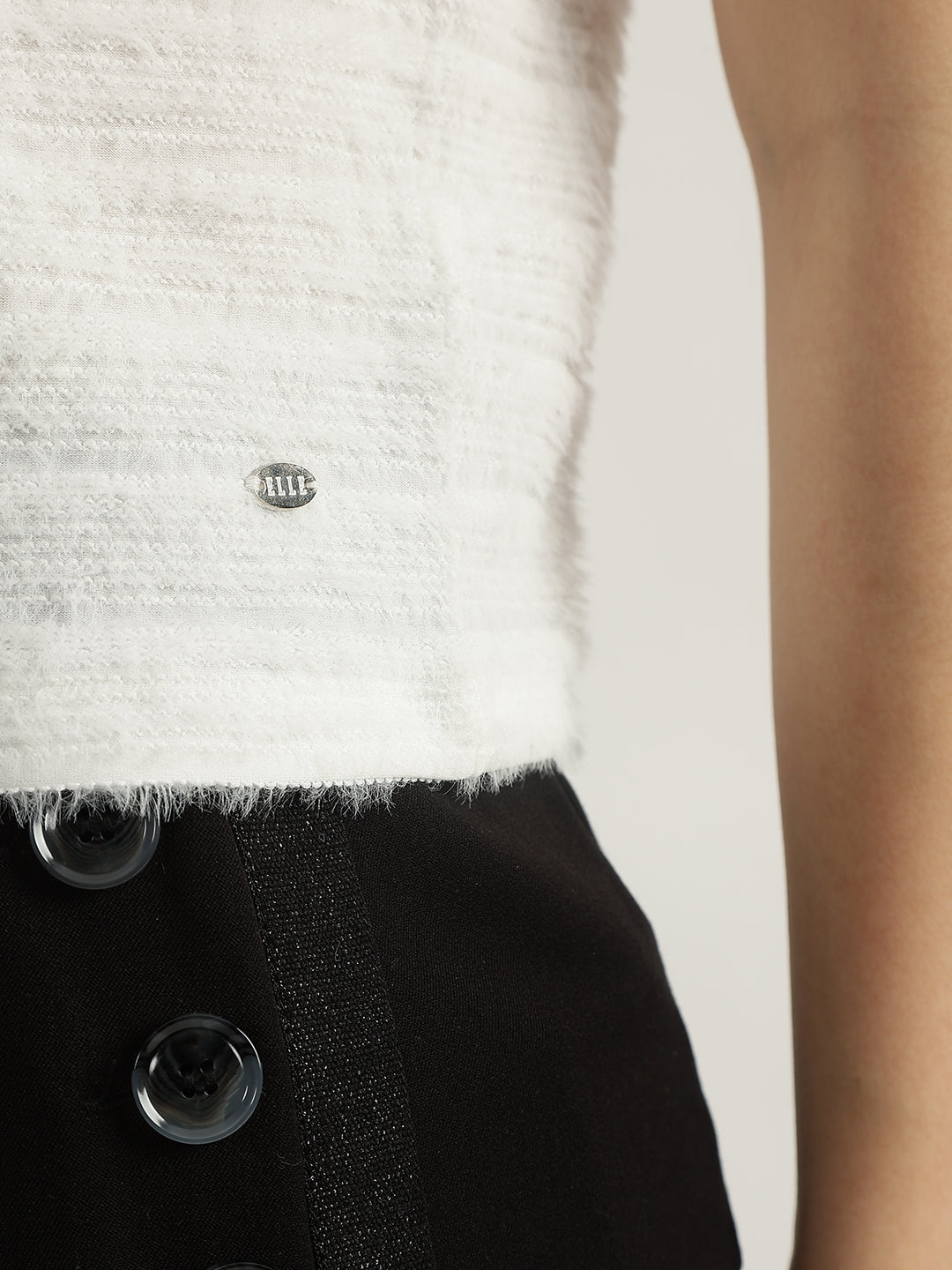 Elle Women White Solid High Neck Short Sleeves Tshirt