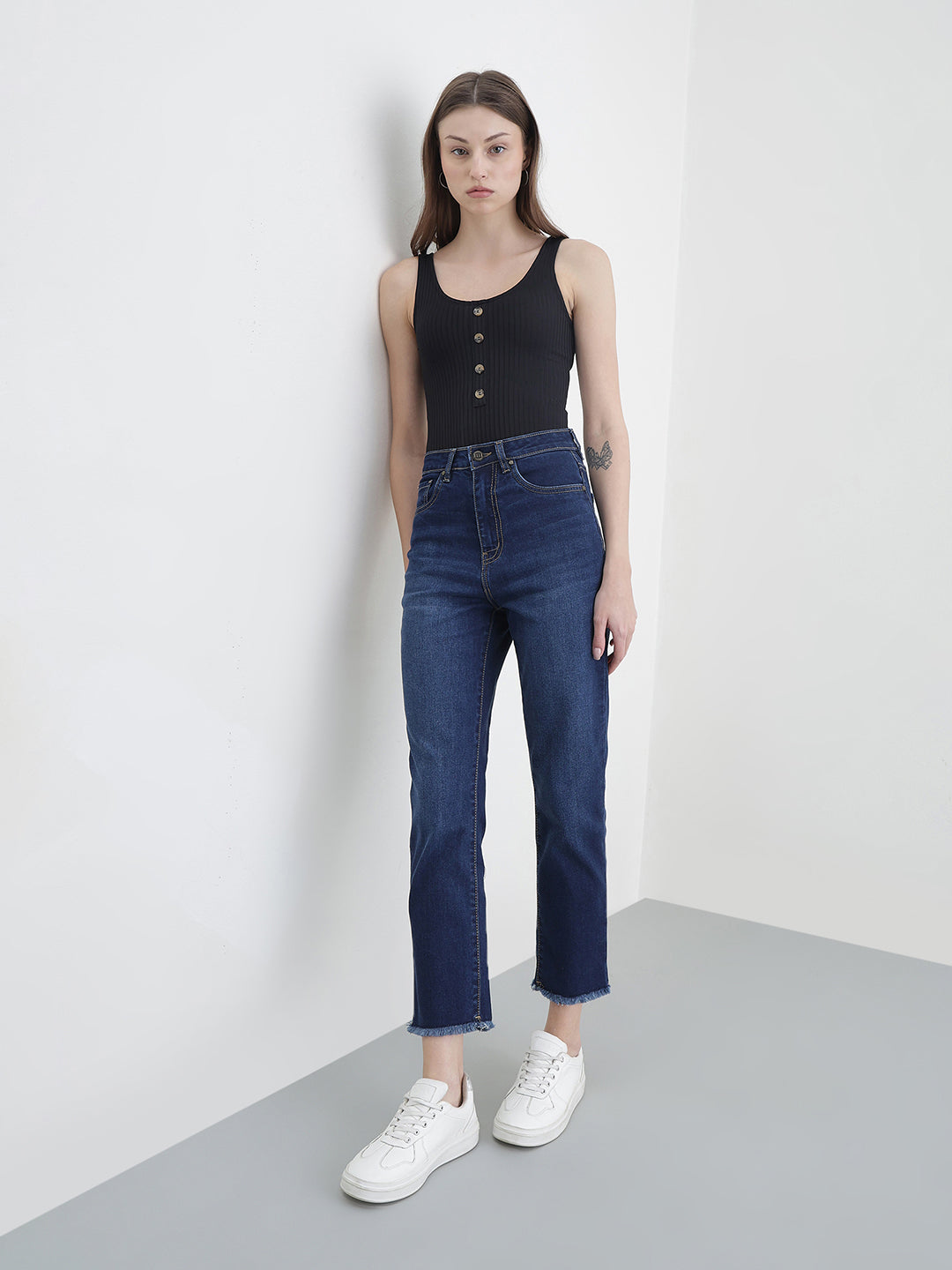 Clean, modern, and effortlessly versatile, the ELLE Women Blue Solid Slim Straight Fit Jeans are a contemporary denim essential. The classic blue tone paired with the slim straight fit creates a polished, balanced silhouette that suits a wide range of casual and smart-casual outfits. Reflecting ELLE's approach to fashionable women's denim, these jeans offer a reliable, stylish wardrobe foundation piece.
