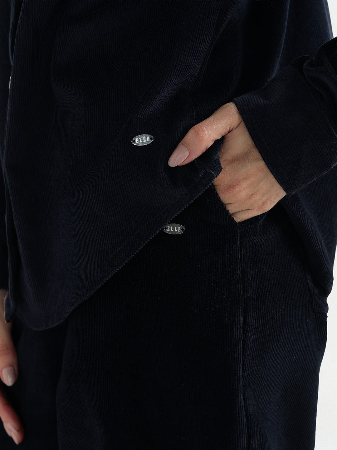 Elle Women Regular Fit Navy Blue Solid Shirt