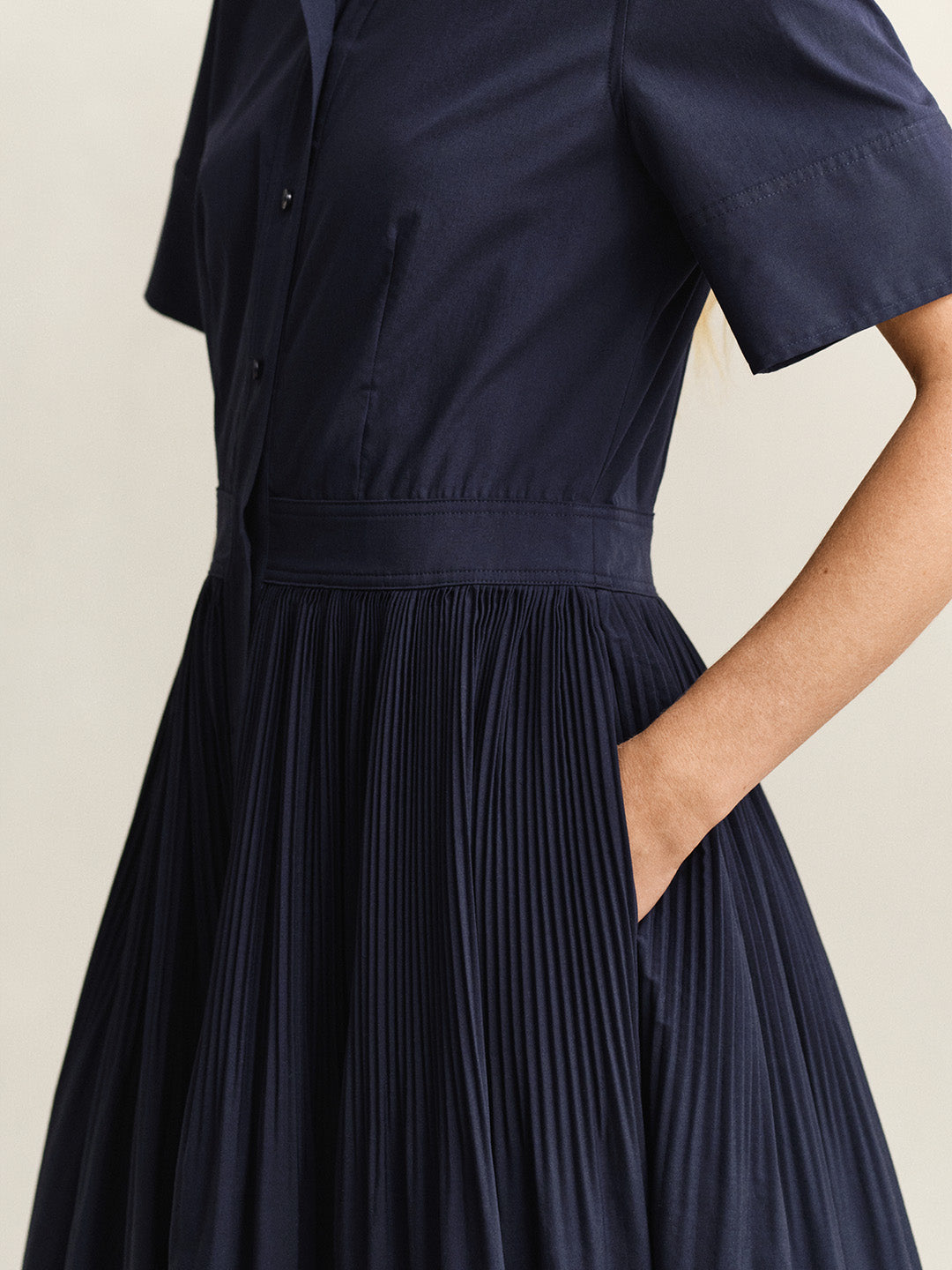 Elevate your wardrobe with our GANT Women Navy Blue Printed Midi Shirt Dress. Crafted with high-quality materials, this dress combines comfort with style effortlessly. The unique navy blue print adds a touch of sophistication, making it perfect for both casual outings and formal events. The versatile midi length and shirt dress design flatter all body types, while the breathable fabric ensures all-day comfort. Stand out from the crowd and make a lasting impression with this must-have addition to your closet.