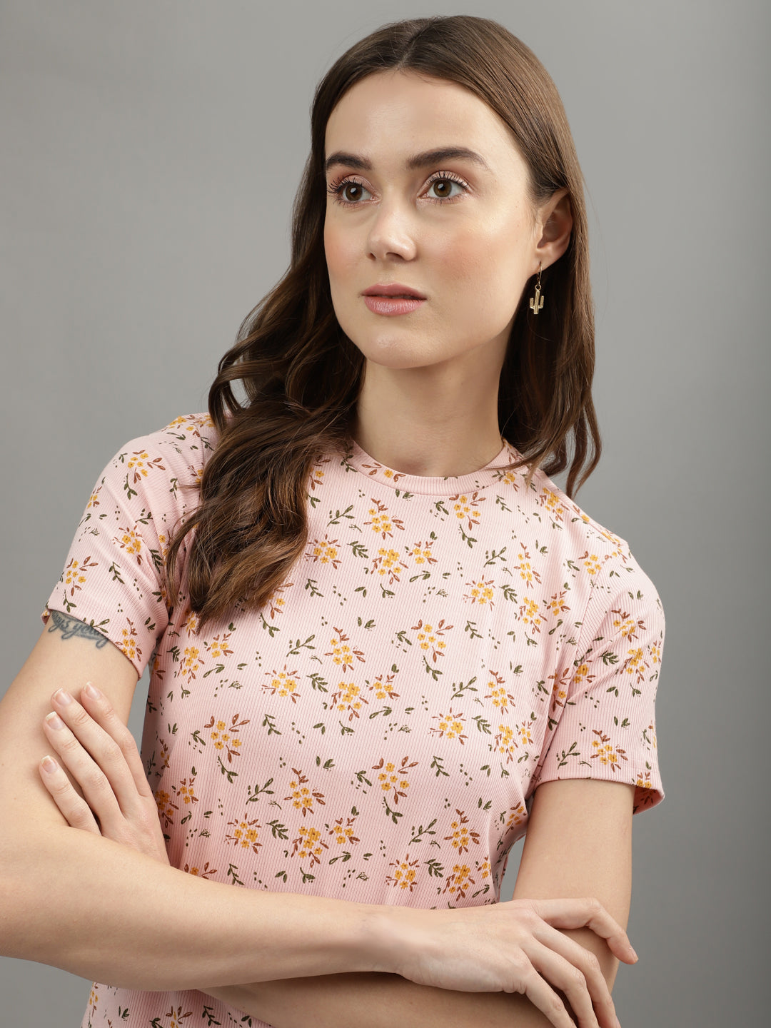 Iconic Women Multicolor Printed Round Neck Short Sleeves Tshirt